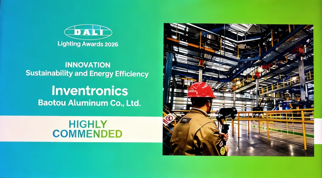 展会现场见证荣耀时刻,在DALI Lighting Awards 2026 Live Winner Reveal活动上,英飞特电子携手合作伙伴打造的“包头铝业 - 合金6万吨圆铸锭项目智慧照明系统”从全球申报的百余个项目中脱颖而出,荣获 “Sustainability and Energy Efficiency”类别的“Highly Commended”荣誉。
