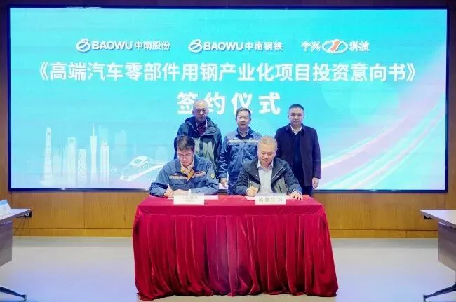 近日,广东韶关松山产业园高端汽车零部件用钢产业化项目签约仪式在宝武集团中南股份营销中心举行,标志着中南股份强链延链推动区域在高端汽车零部件用钢领域的产业化布局上迈出关键一步。中南钢铁、成都宁兴、曲江区、宝地广东有关领导参加签约仪式。