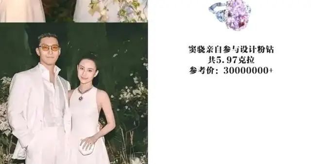 何超莲与窦骁的婚礼上,女方戴着一枚粉红色的钻戒露面相当抢眼,也是窦骁亲自参与设计,这枚重量接近六克拉的钻戒被曝价值三千万。