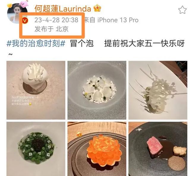4月28日晚上,何超莲更新动态,并晒出多张照片,这也是她婚后的首晒,配文中她提前送出了五一祝福,归属地显示她人在北京,显然夫妻俩已经从巴厘岛回到北京。