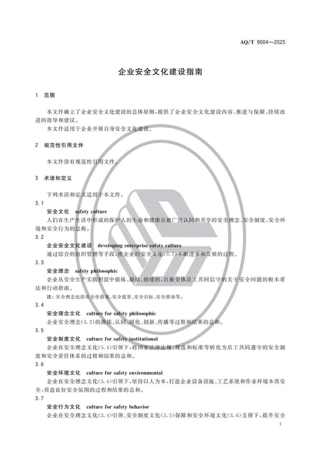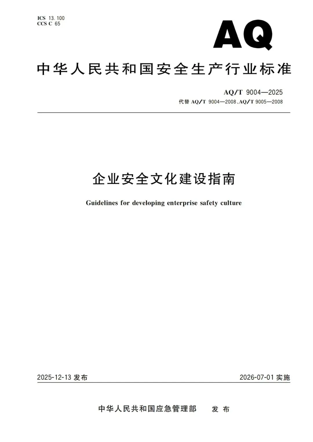 安全生产行业标准:《企业安全文化建设指南》2026年7月1日起实施!