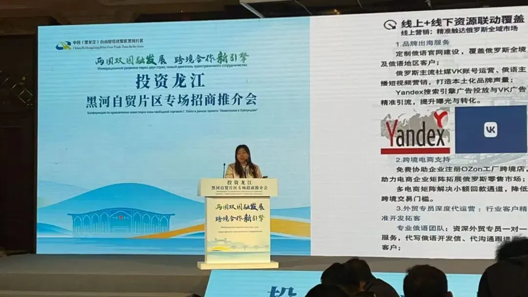 3月12-13日,投资龙江——黑河自贸片区专场招商推介会在黑河银建酒店盛大举办并圆满收官!中俄政府代表、商协会负责人、企业家及媒体等200余人齐聚,共话跨境合作新机遇,现场达成十余个重点项目合作意向,黑河对俄开放合作再添强劲新动能? 本次推介会以“两国双园融发展 跨境合作新引擎”为主题,聚焦跨境产业合作、通道建设、政策赋能等核心话题,全方位展现黑河自贸片区作为我国向北开放重要窗口的产业集聚能力与项目承载实力。 黑河市委书记李锡文出席,市委副书记、市长秦波等致辞,俄罗斯阿穆尔州投资促进局、工商会等俄方代表及省对俄经贸投资商会等机构嘉宾到场发言,深入探讨中俄经贸合作新路径,释放明确合作信号。 黑河自贸片区依托黑龙江公路大桥、跨境索道等立体通关网络,实现四季通关、多式联运。现场详细推介“343”开放型现代化产业体系,重点布局跨境电商、互市贸易加工、跨境文旅等特色产业,亿级产业引导基金同步亮相,为企业入驻发展提供坚实政策与资源保障。 推介会配套境内实地考察与分组对接会,创新设置“展示+体验+洽谈”一体化场景。中俄企业家围绕跨境贸易、农产品加工、生物经济等8大领域深度洽谈,达成跨境农产品交易、食品供应链合作、中草药种植等十余个重点意向,实现信息、资源、项目的高效匹配。 黑龙江省对俄经贸投资商会驻两国双园联络处、广东省对俄贸易促进会驻黑河联络处揭牌,进一步强化平台服务功能,搭建起中俄企业常态化对接桥梁。 本次黑河招商推介会,与俄贸圈同期举办的外贸获客实操线下课、俄罗斯实地考察形成联动,三大活动无缝衔接,圆满完成对俄贸易全链路赋能闭环: 独立站与社媒获客全流程拆解,Ozon、VK、Yandex等平台实战教学,结合商务谈判、账号诊断等实操内容,帮助零基础新人、外贸老板、跨境电商从业者快速掌握对俄获客核心技能。往期学员免费复训,实战干货全员吃透! 依托官方平台,实现中俄政企精准对接,境内考察跨境索道、国际商贸中心等核心载体,境外对接俄罗斯阿穆尔州卡尼库尔干口岸等前沿园区,让参与者直观感受黑河跨境产业生态,锁定真实合作机会。本次活动官方免费,为外贸人搭建低成本合作桥梁。 深入布市大型批发市场,探访当地经销商,实地调研日用百货、建材等品类市场需求,将线下课所学转化为海外实战落地动作,精准对接海外客源,挖掘市场潜力。 2026年,中俄跨境贸易迎来黄金爆发期!黑河自贸片区凭借政策红利、区位优势与产业支撑,成为对俄合作核心热土。俄贸圈三大活动圆满落幕,累计助力数百位外贸从业者、企业负责人打通政策解读、获客实操、资源对接、海外考察全链条,真正实现“走出去”落地生根。 未来,俄贸圈将持续搭建优质平台,整合中俄资源,助力更多企业抢抓对俄贸易机遇,携手共赢跨境合作新未来!