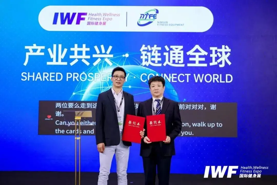 典礼现场同步举行重磅颁奖与战略签约仪式。展会为DMS赛事中心、Zumba尊巴健身、李欣普拉提、Z&BFitness颁发年度卓越合作伙伴奖,同时揭晓了“战略共赢奖”“战略领航奖”“2025最具影响力新兴赛事奖”等多项荣誉,致敬行业标杆与榜样力量。在战略签约环节,有着“中国商用健身器材之都”称号的宁津县人民政府与IWF正式达成战略合作,双方将依托产业优势与平台资源实现资源共享、协同发展,助力国产健身器材产业升级与全球化布局,宁津县副县长刘汉章现场分享了产业发展经验,阐释了本次合作的深远意义。最终,在全场观众的倒计时声中,11位重磅嘉宾共同登台按下启动键,璀璨光柱同步点亮,标志着IWF2026上海国际健身展正式盛大启幕,现场掌声雷动,将开幕典礼的气氛推向最高潮。