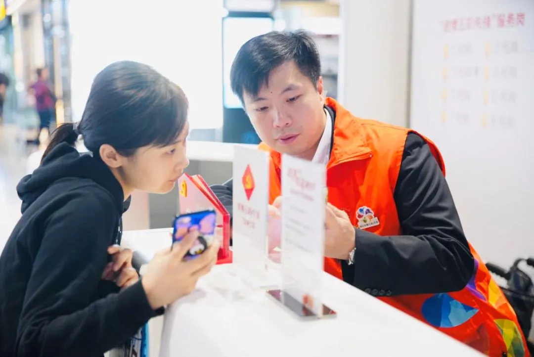 上海万通中心支行是离进博会举办地上海国家会展中心最近的工行网点。今年第二届进博会来临之际,网点一方面完善基础设施,增配咖啡机、毛巾机及各类饮品,为进博会期间到店客户提供更具品质的服务体验,另一方面坚持“走出去”“送服务”的理念,积极参加当地“进博五彩先锋”服务活动。日客流量19万人次的铁路上海虹桥站及日客流量25万人次的地铁虹桥火车站是通往上海国家会展中心的必经之路,网点每天派出工作人员,为往来旅客、乘客提供交通指引、住宿咨询、医疗服务、手机充电、金融业务咨询等服务,把工商银行的优质服务带到服务进博的第一线。