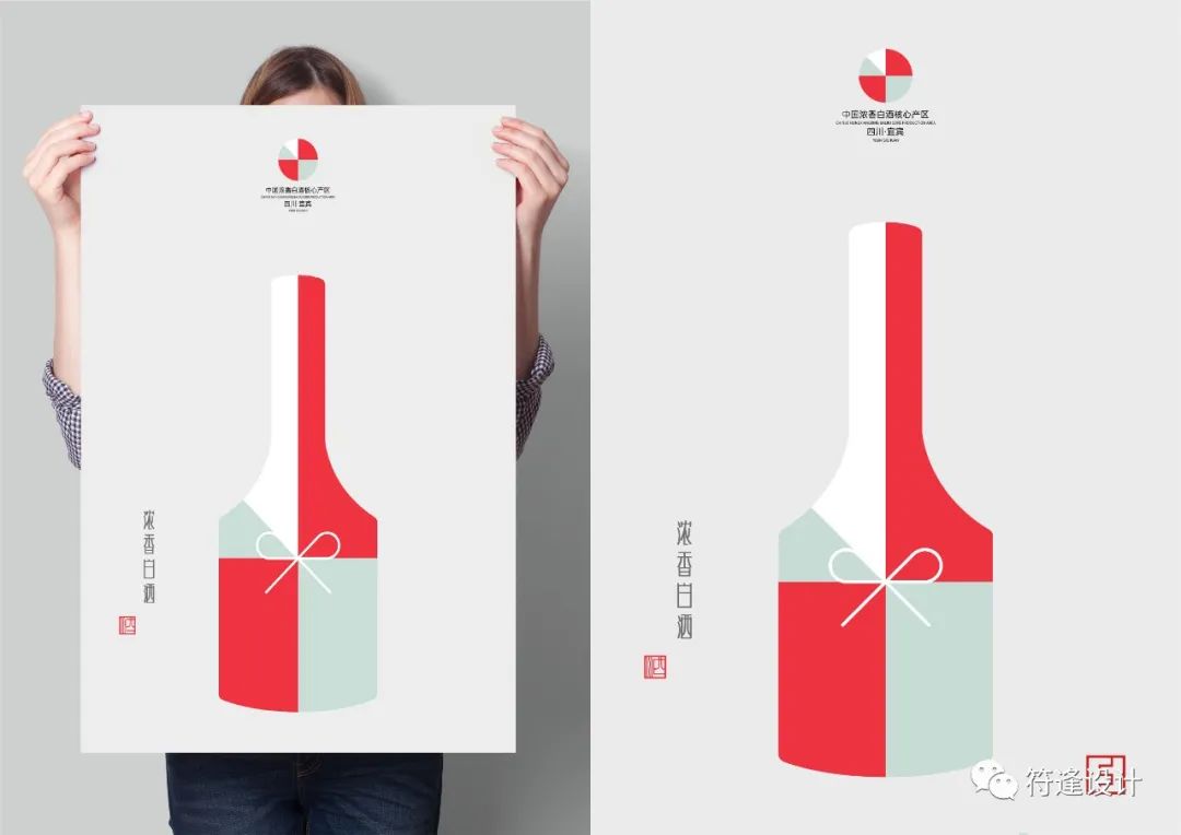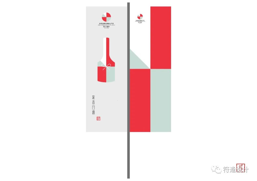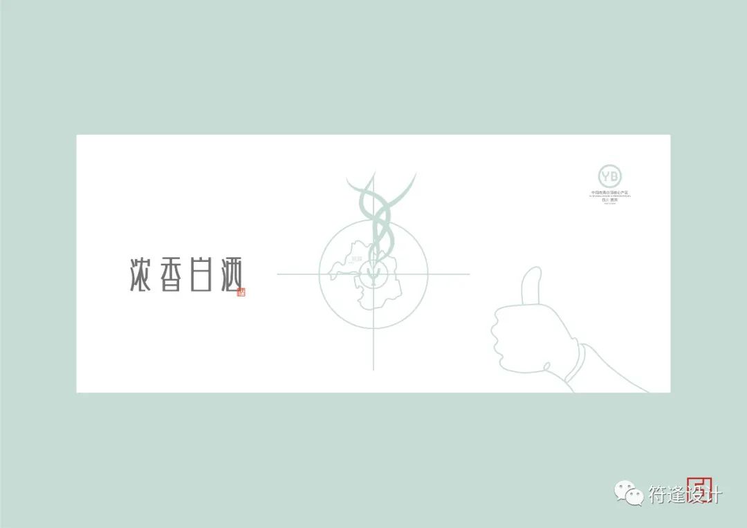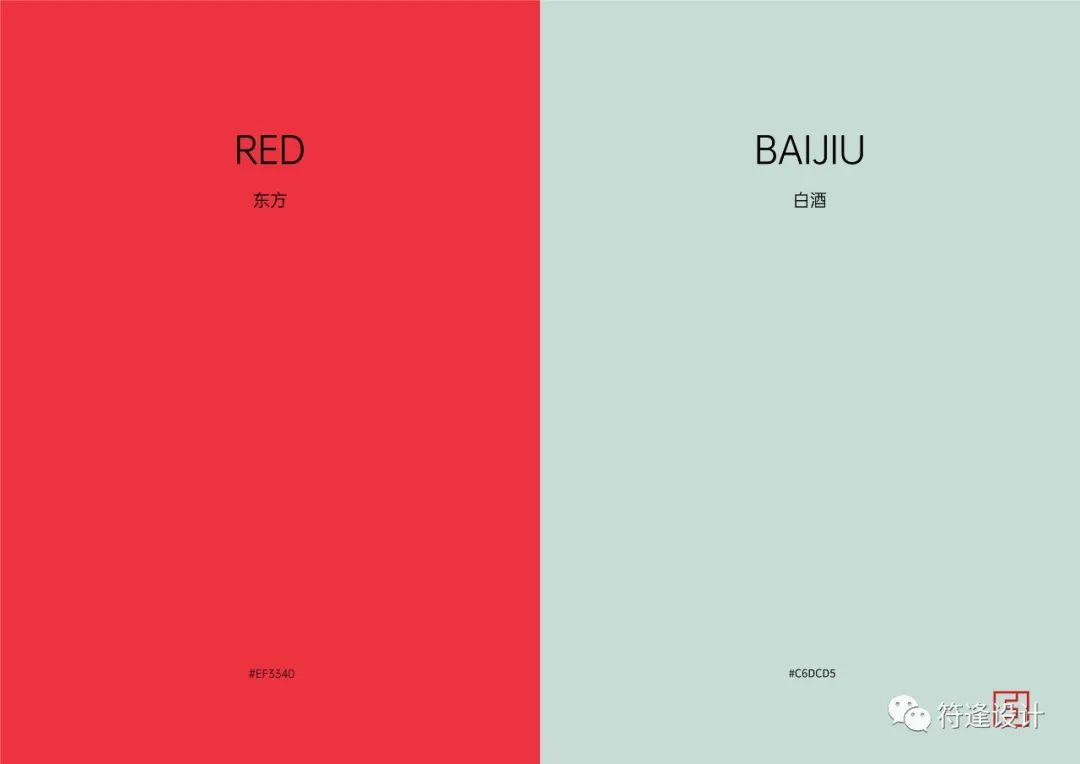 颜色说明:酒是白色,白色是无色,所以加些环境色,绿色环保,偏绿色一些,蓝色一点科技感,会现代一下。最后得出比较淡雅的、高雅的颜色。红色、东方的颜色,白酒东方的特色。白色代表天空、代表道法自然、代表环保干净。