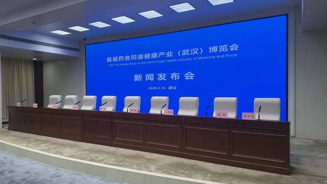 2026年3月14日,江城武汉春意盎然,洪山礼堂内高朋满座。备受瞩目的首届药食同源健康产业(武汉)博览会新闻发布会在此隆重举行。来自政府相关部门、行业协会、科研院校、知名企业及主流媒体的百余位代表齐聚一堂,共同见证了这一大健康产业盛事的启航。