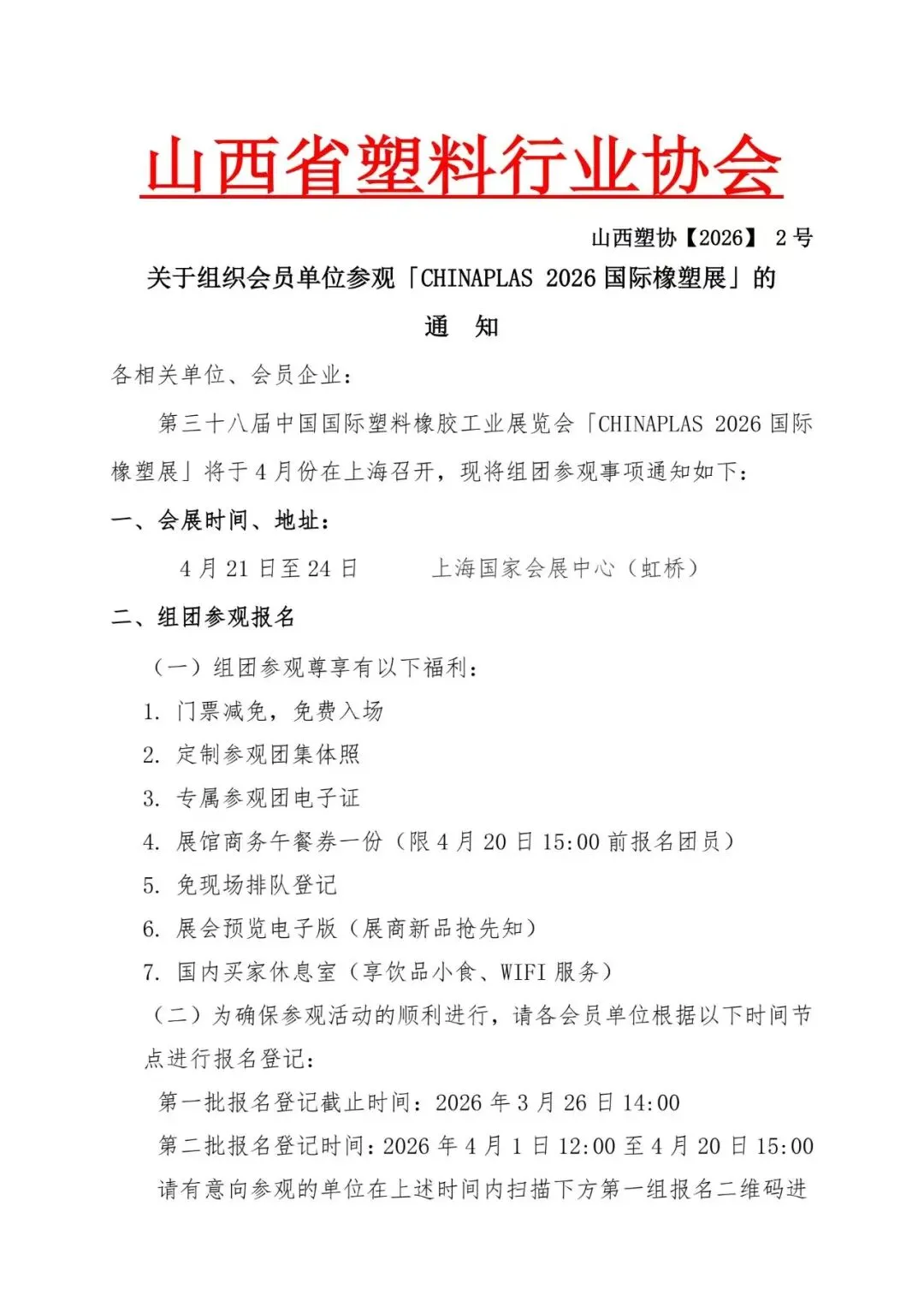 [展会资讯]关于组织会员单位参观「CHINAPLAS 2026国际橡塑展」的通知