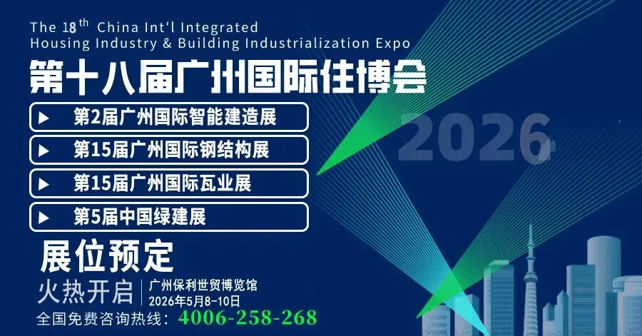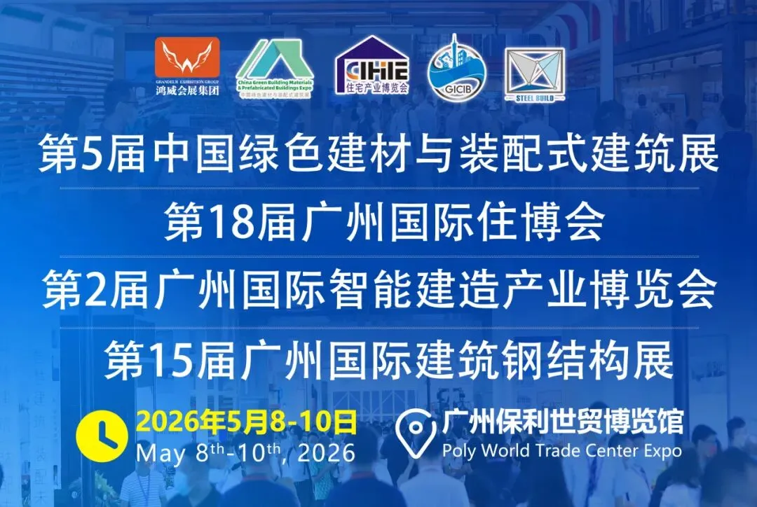 第18届广州国际住博会、第2届广州国际智能建造展、第15届广州国际钢结构展、第16届广州国际瓦业展、第5届中国绿建展(简称:CIHIE 2026)将于2026年5月8-10日在广州保利世贸博览馆举办。目前,CIHIE 2026展位预定火热开启,快来锁定您的专属展位。