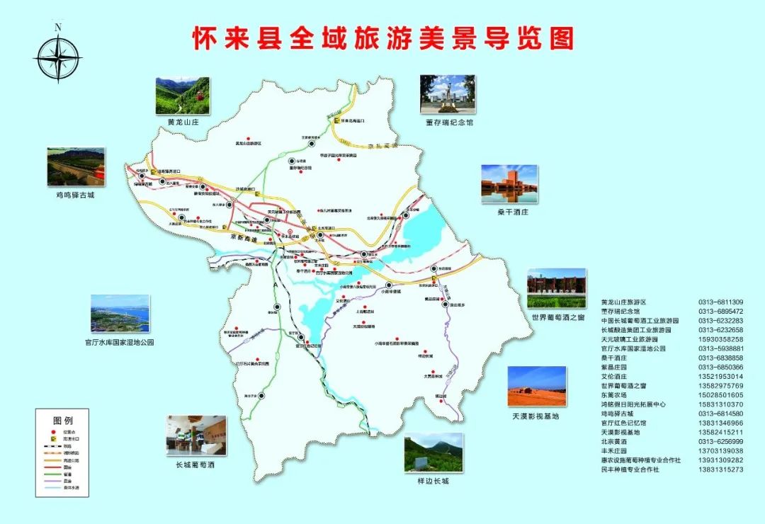 生态之城 怀来空气质量二级以上天数年均224天,空气中负氧离子含量高,生态优美,气候宜人,被国家住建部评为国家级园林县城。有黄龙山庄(4A)等自然生态景区,怀来官厅水库国家湿地公园是华北最大的湿地公园。