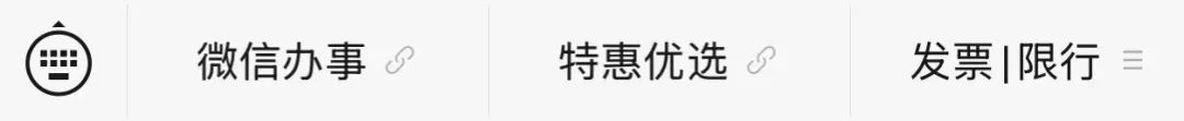 ➤可以在下方菜单栏点击微信办事,特惠优选,发票\限行获取你想看的内容: