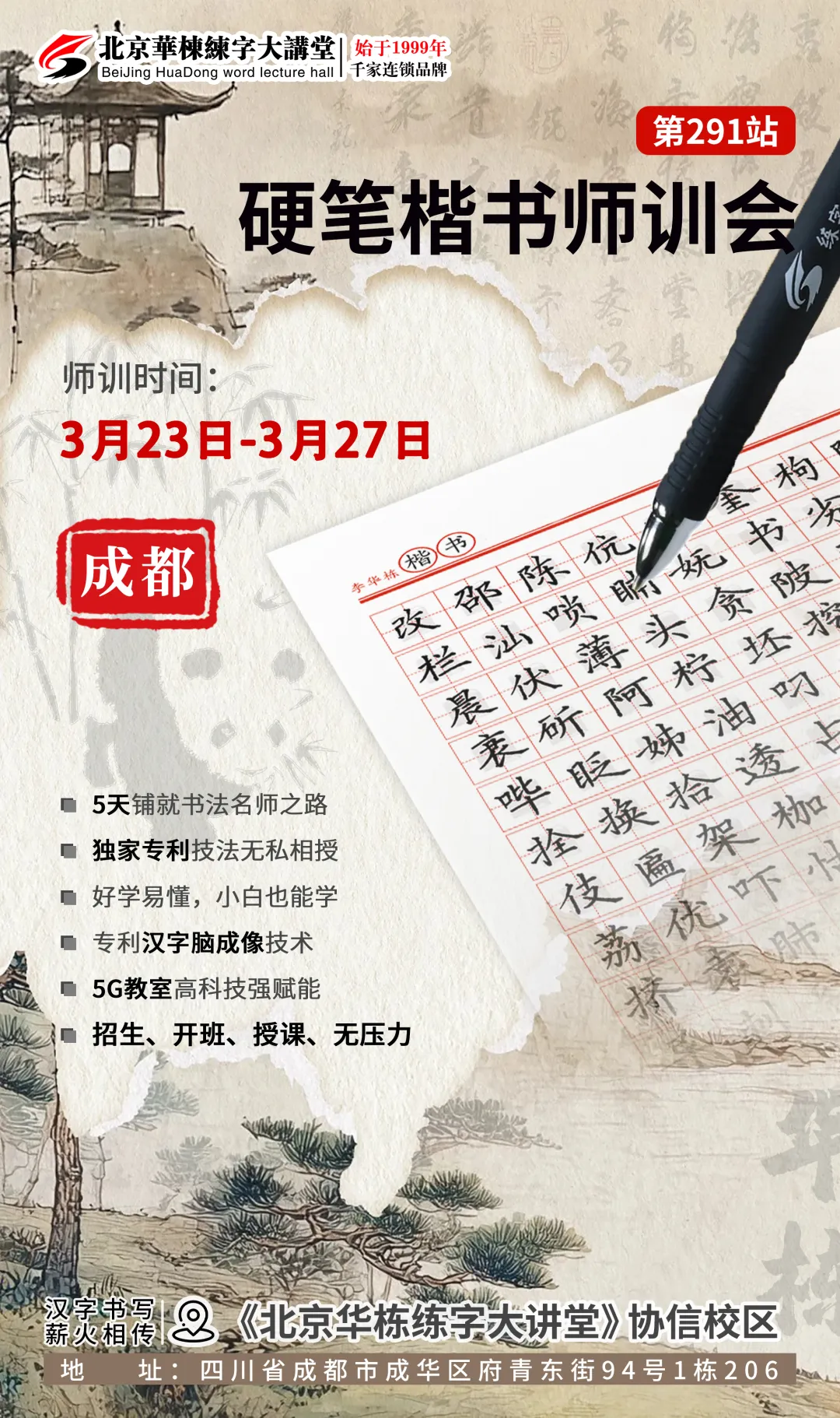 1、校区:必须有“华栋练字”门头门牌、校长微信常态化宣传“华栋练字”品牌、无合同违规行为。