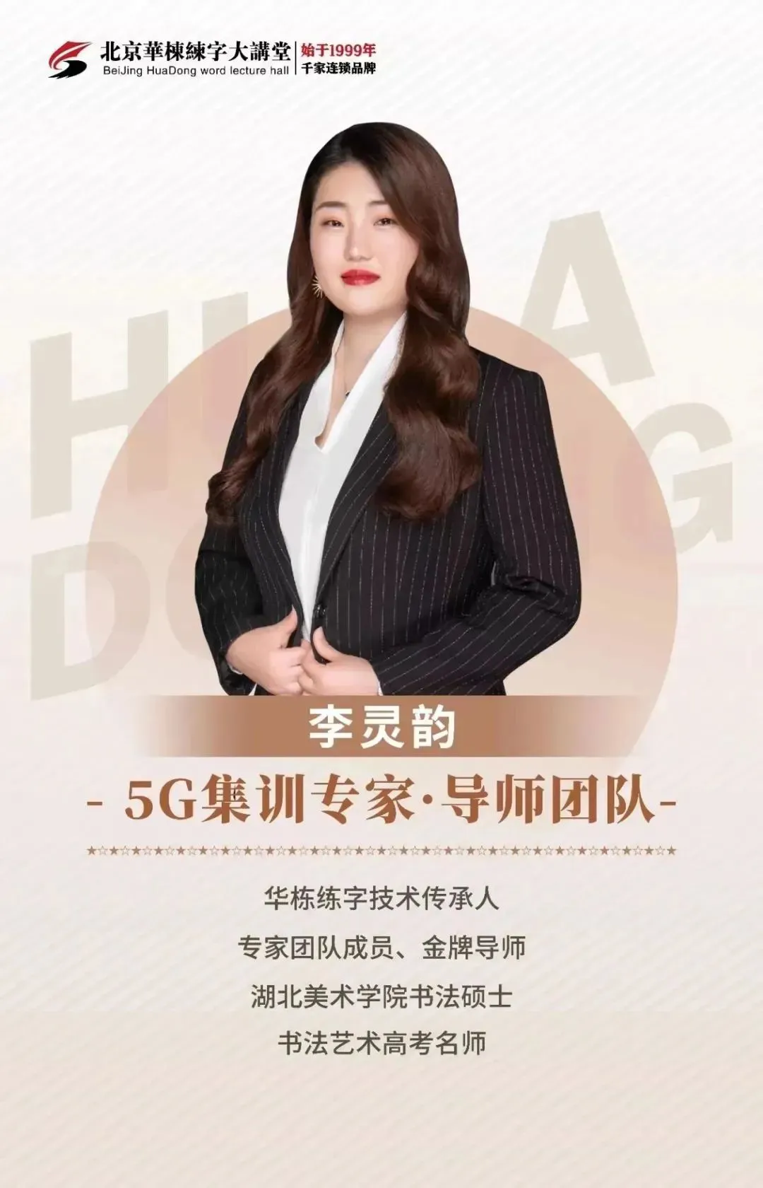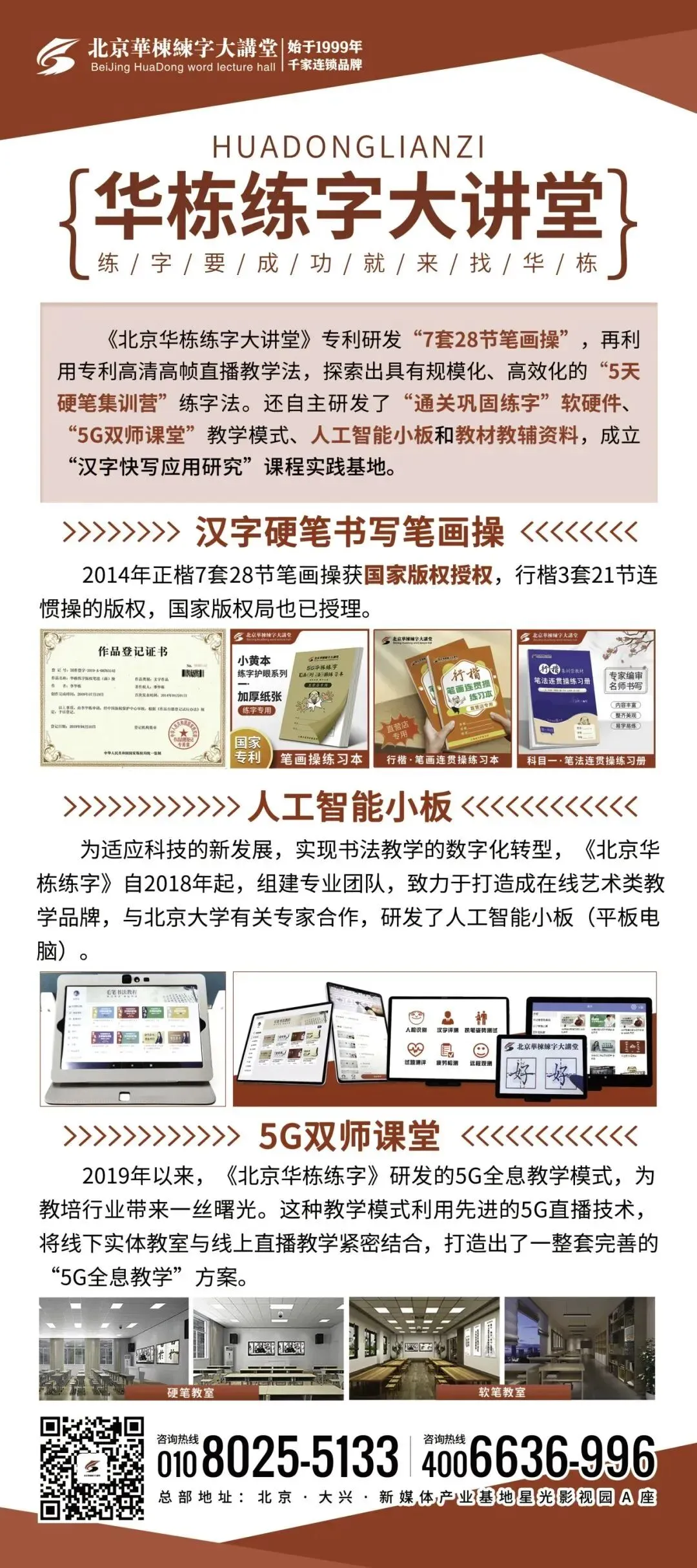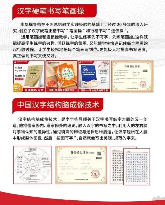 “北京兰台书法教育科技有限公司”深耕书法教学培训26年,创建了《华栋练字大讲堂》这一著名品牌,其创始人发明的硬笔楷书“7套28节笔画操”、硬笔行楷“3套21节连惯操”、练字“三维空间格”、“汉字结构脑成像技术”等,获得国家发明专利和著作权。也使《华栋练字》成为了全民练字的领航品牌。