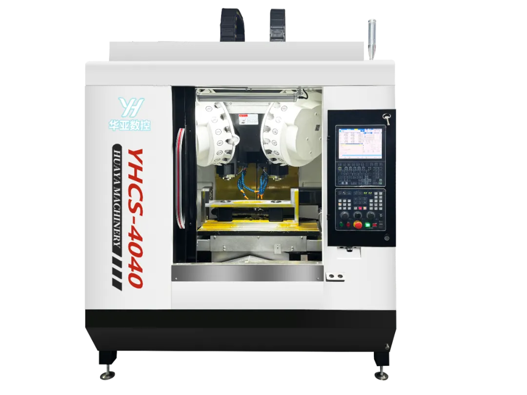 深圳市华亚数控推出的高速双主轴+双五轴+双刀库精密钻攻中心,主打“一台顶两台”的批量加工能力;采用高强度铸铁床身,双立柱独立分区;支持一次装夹双零件同步/左右单独加工,覆盖3C电子、新能源电池、汽车精密部件、光学零件的钻、攻、铣复合工序;特别适合需要5轴联动做复杂曲面/多面加工的大批量产线,可大幅节省场地与人工成本。适用于3C通讯(无线充、手机中框)、新能源电池正负极、汽车精密小件、光学镜头框等高精度、大批量零件的钻攻铣复合加工。