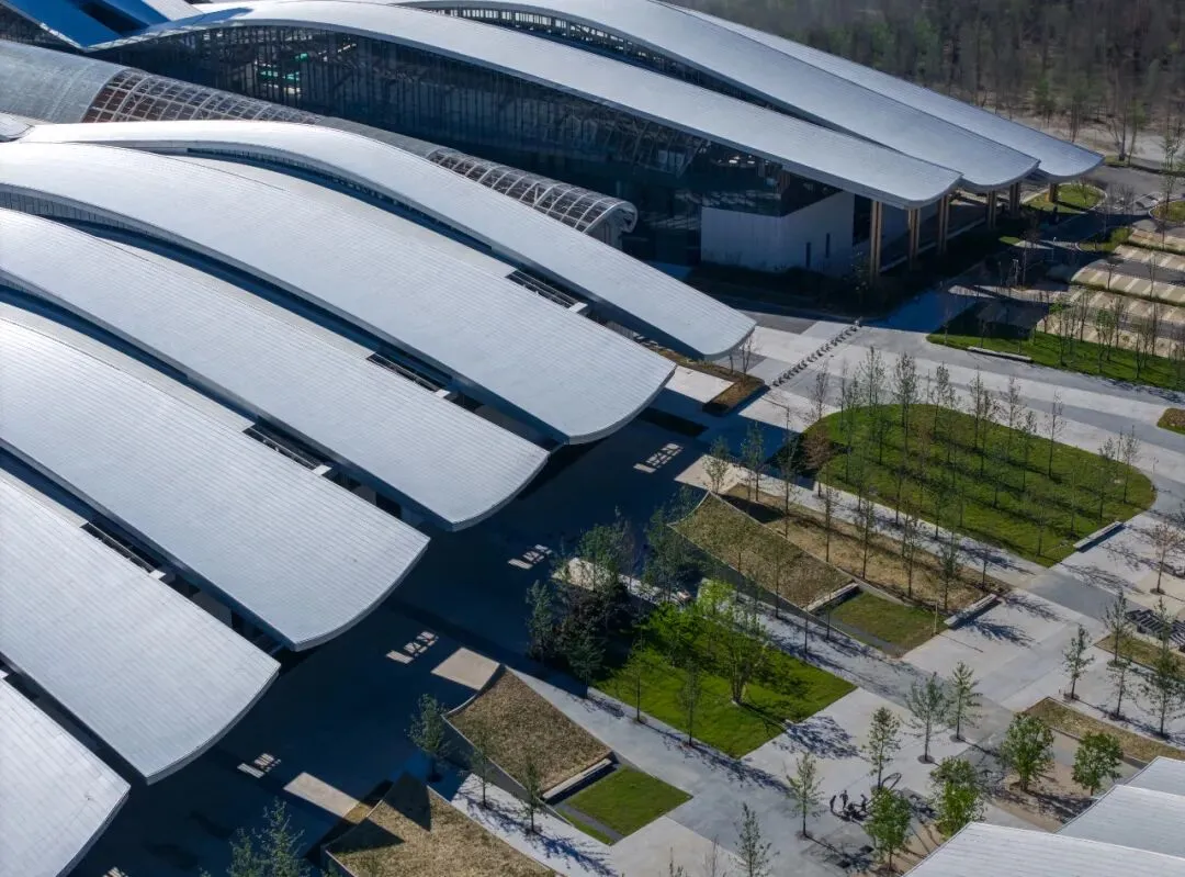 南北向轴线的“会议谷”连接北侧文化艺术中心至南侧城市商务区。这条宽阔的南北向室内空间,是会展中心最繁忙的公共空间,也是展会活动期间最热闹的全天候市集。