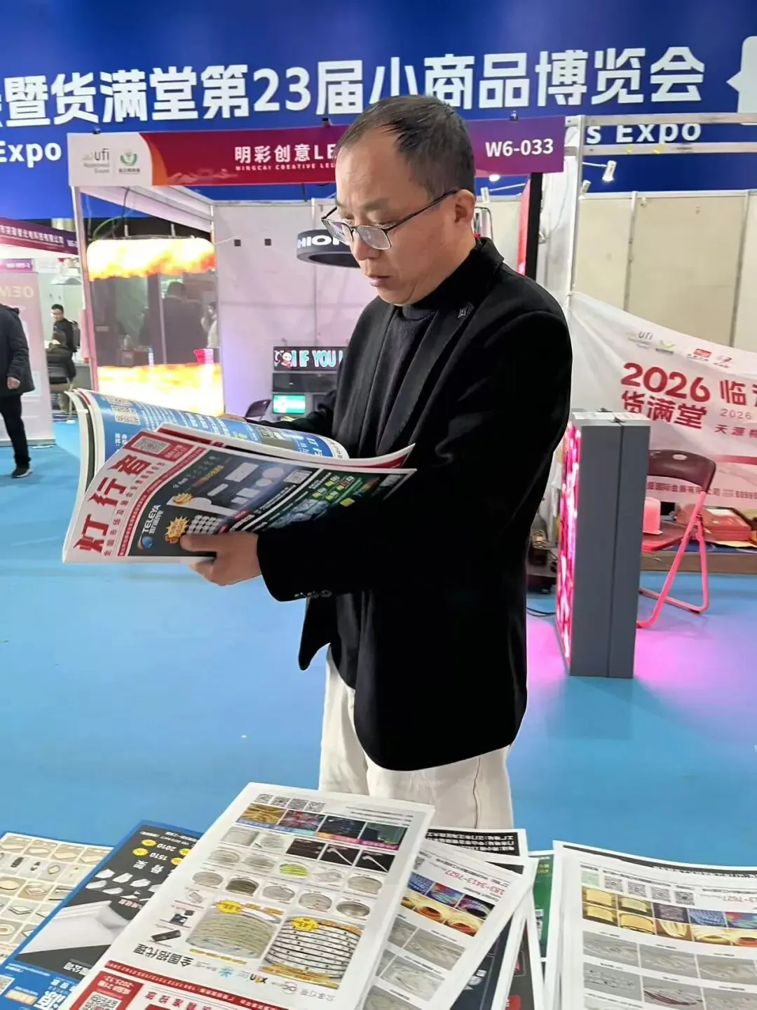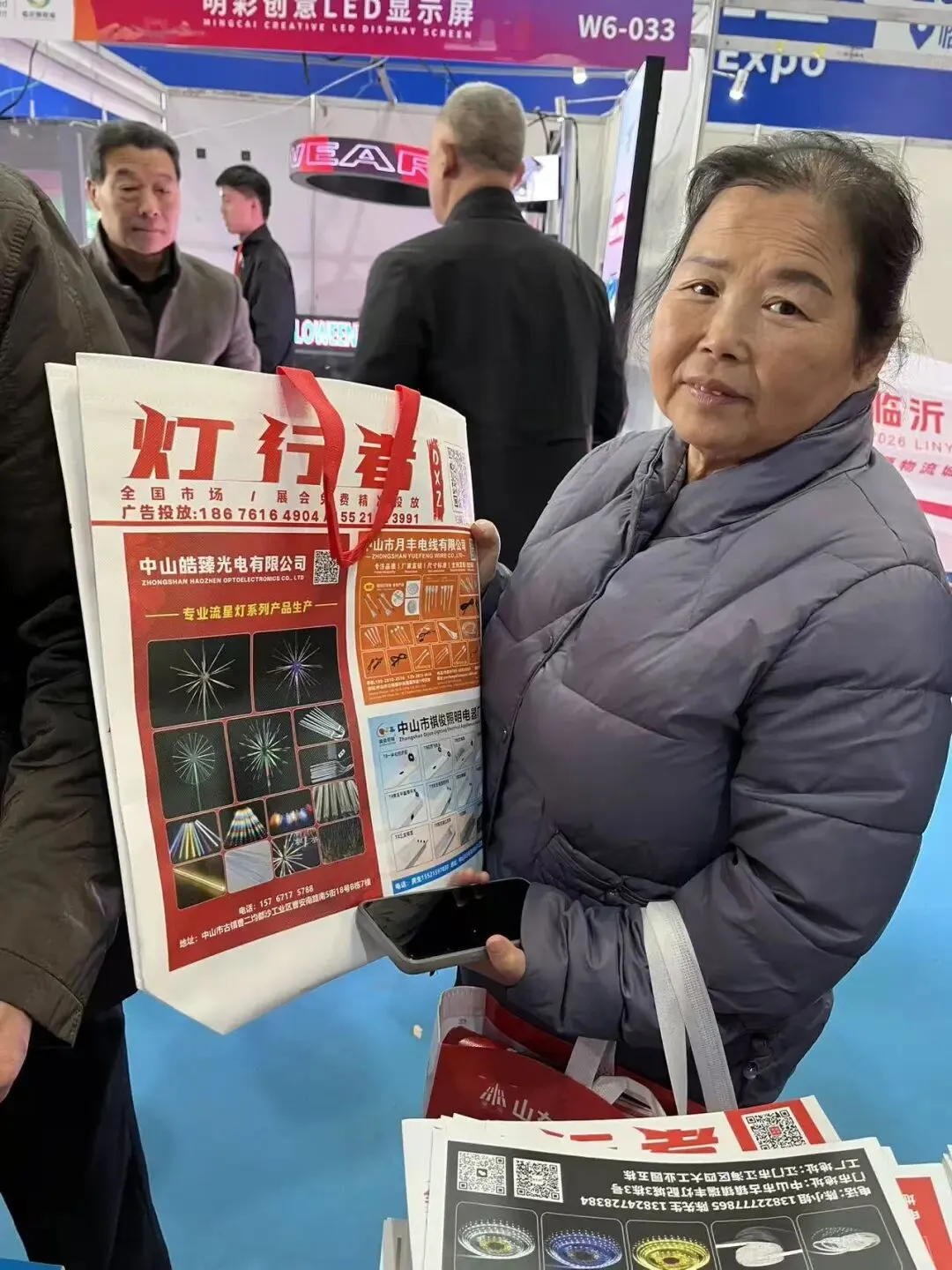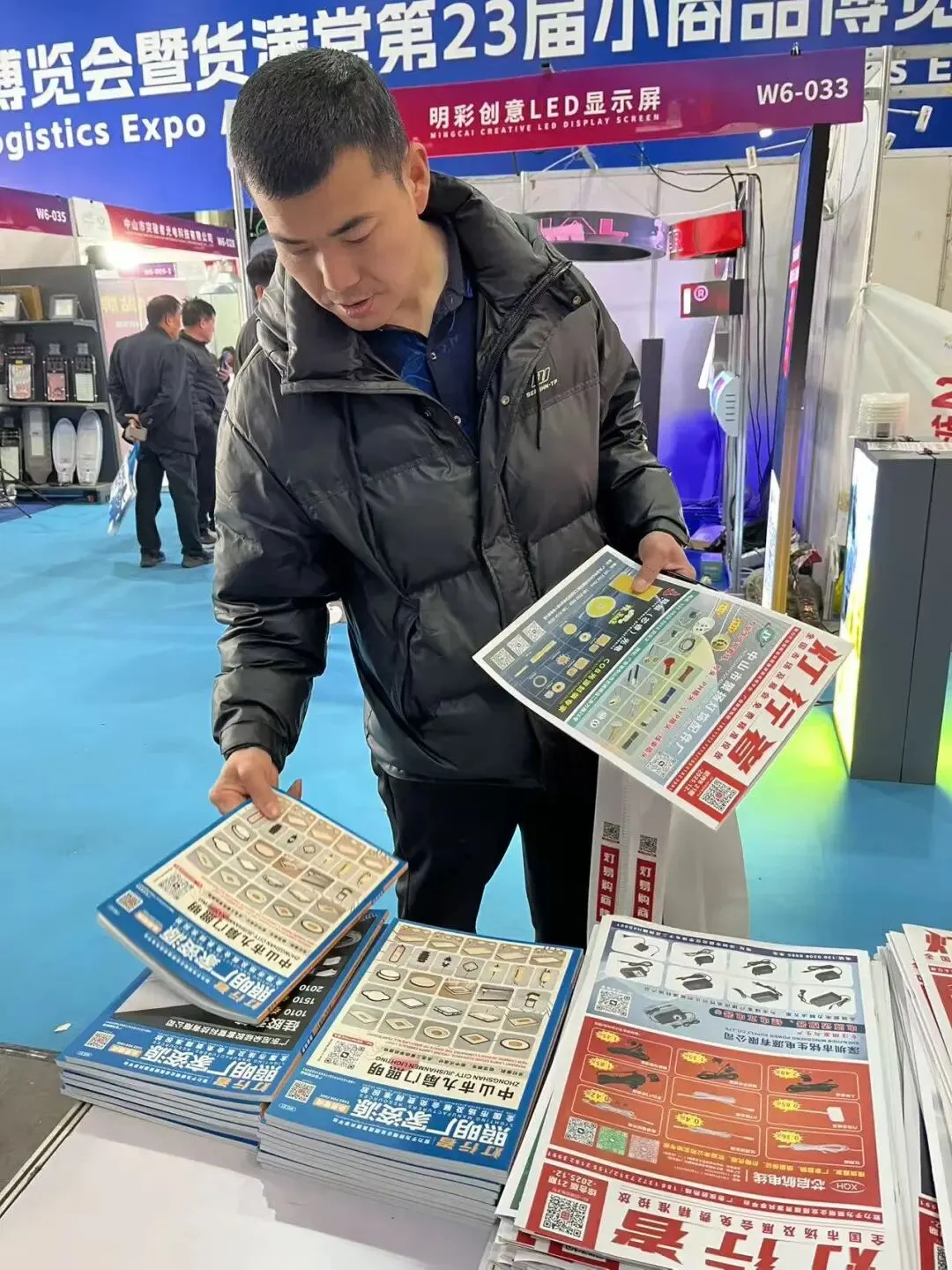 展会第二天,我们团队继续在展馆重点区域进行灯饰行业画册发行。