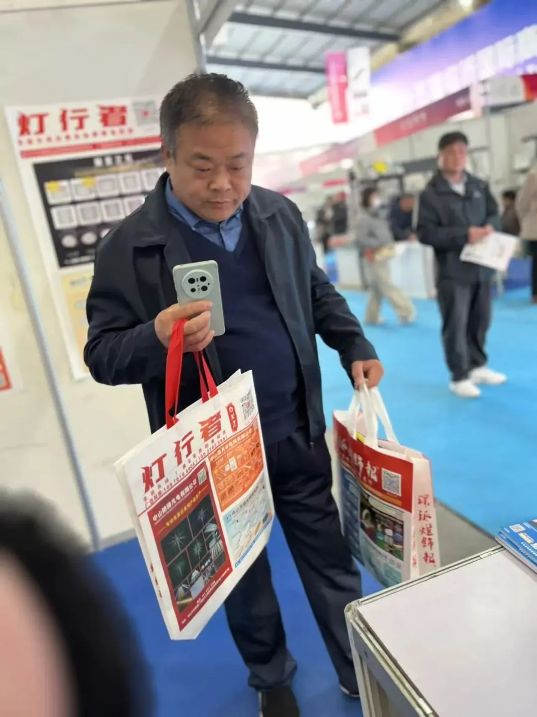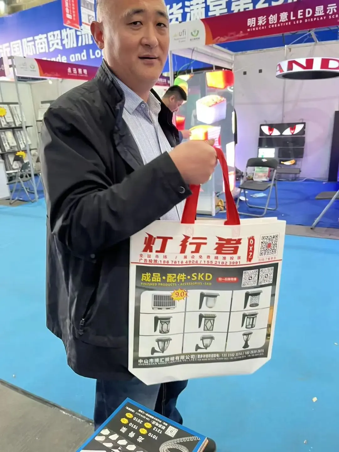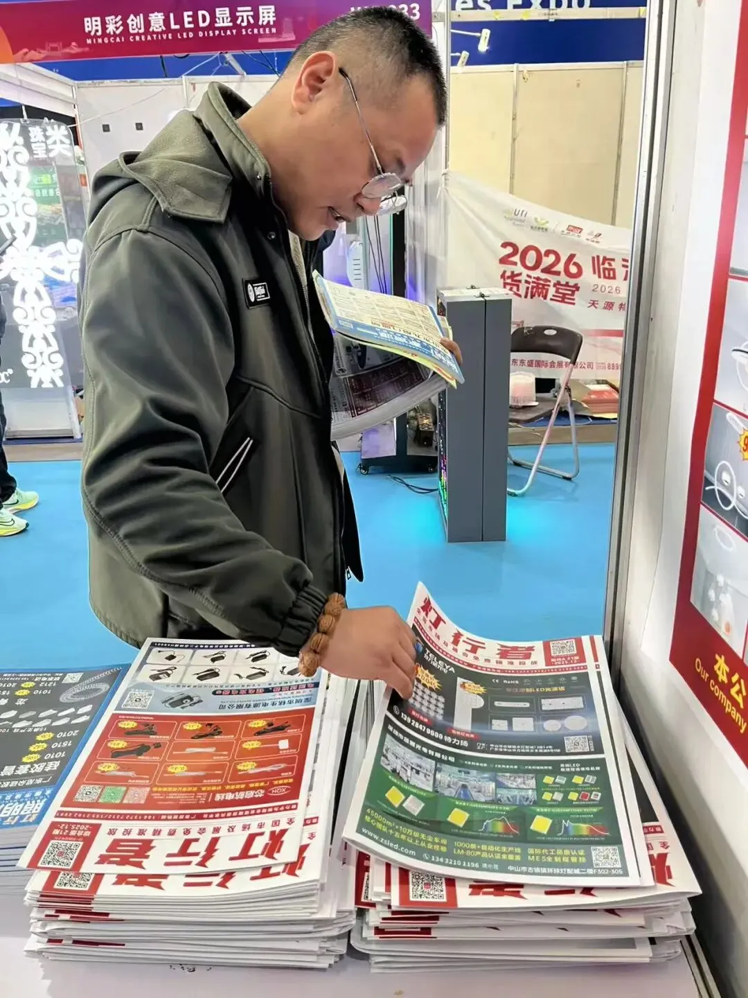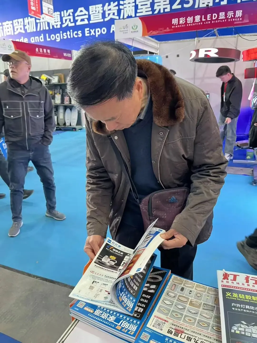 展会第二天,我们团队继续在展馆重点区域进行灯饰行业画册发行。