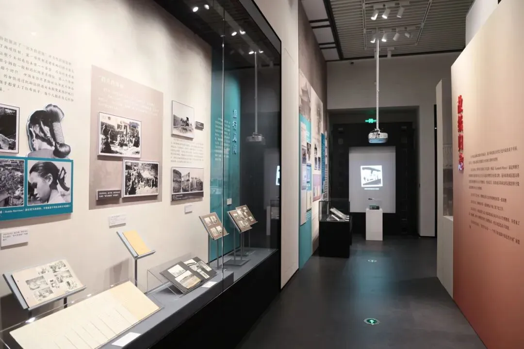 主题单元探访解放区中,因为部分展品为幻灯片,照片的尺寸也比较小,我们把这批历史照片放大制作成视频,在现场轮播。旅行部分,我们还制作了一个“古迹今昔”的立体装置,为三角形旋转立柱,一面为当年家族旅行所拍的历史照片,一面为这些名胜古迹现在的风貌,还有一面是古迹的介绍,通过建筑同一视角的古今对比,以期给观众留下更直观、深刻的印象。