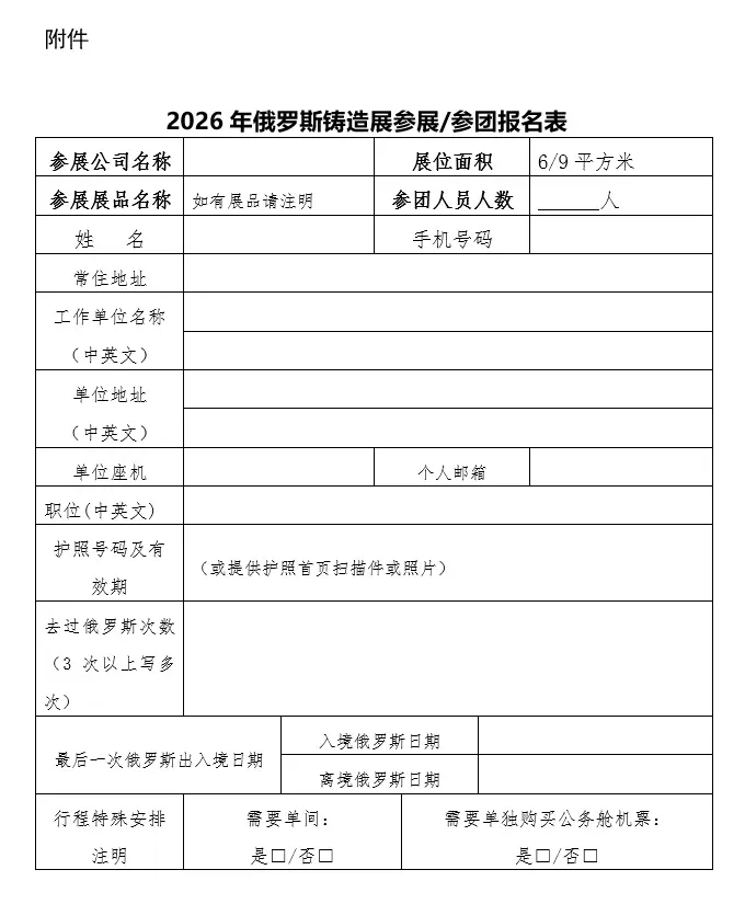 附件:2026年俄罗斯铸造展参展/参团报名表