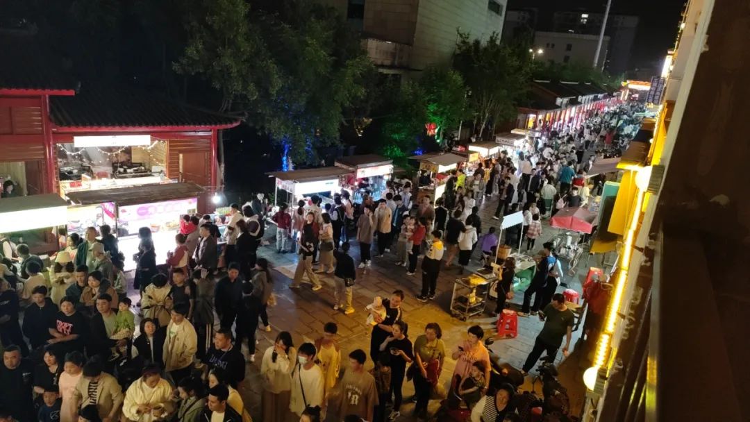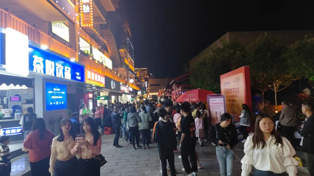 (街区的美食、游玩的游客、是喳西泰不夜城最美的夜景)