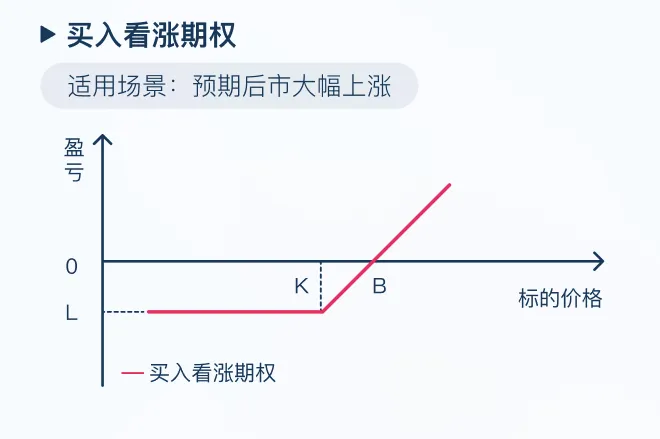 存在一个平衡点(行权价 + 权利金)。价格高于此点,收益随上涨加速放大价格低于此点,即使小幅波动(无论涨跌),你仍在亏损,且最大损失限定为权利金。