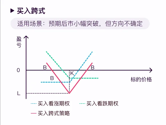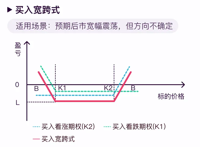 例如在预期市场有大波动但是不确定方向可以买入跨式组合 (Long Straddle/Strangle)。