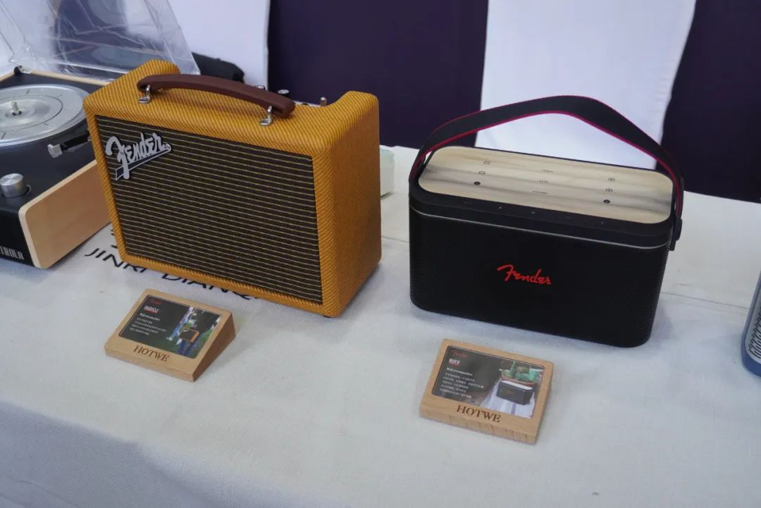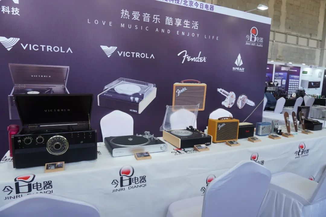 洪陆科技联手北京今日电器带来VOCTROLA一体式唱盘、FENDER便携音箱、SPEAR耳机等产品。