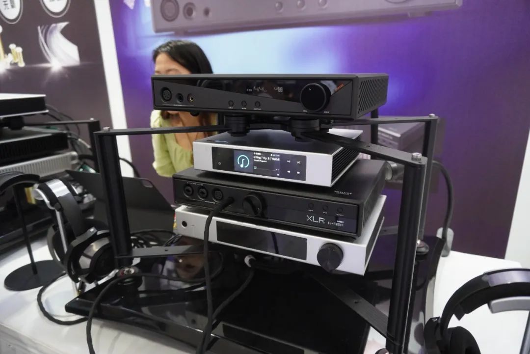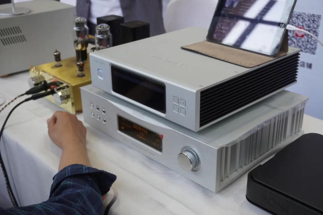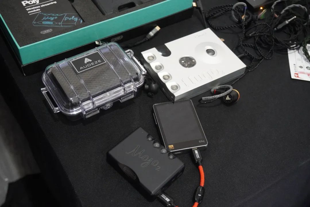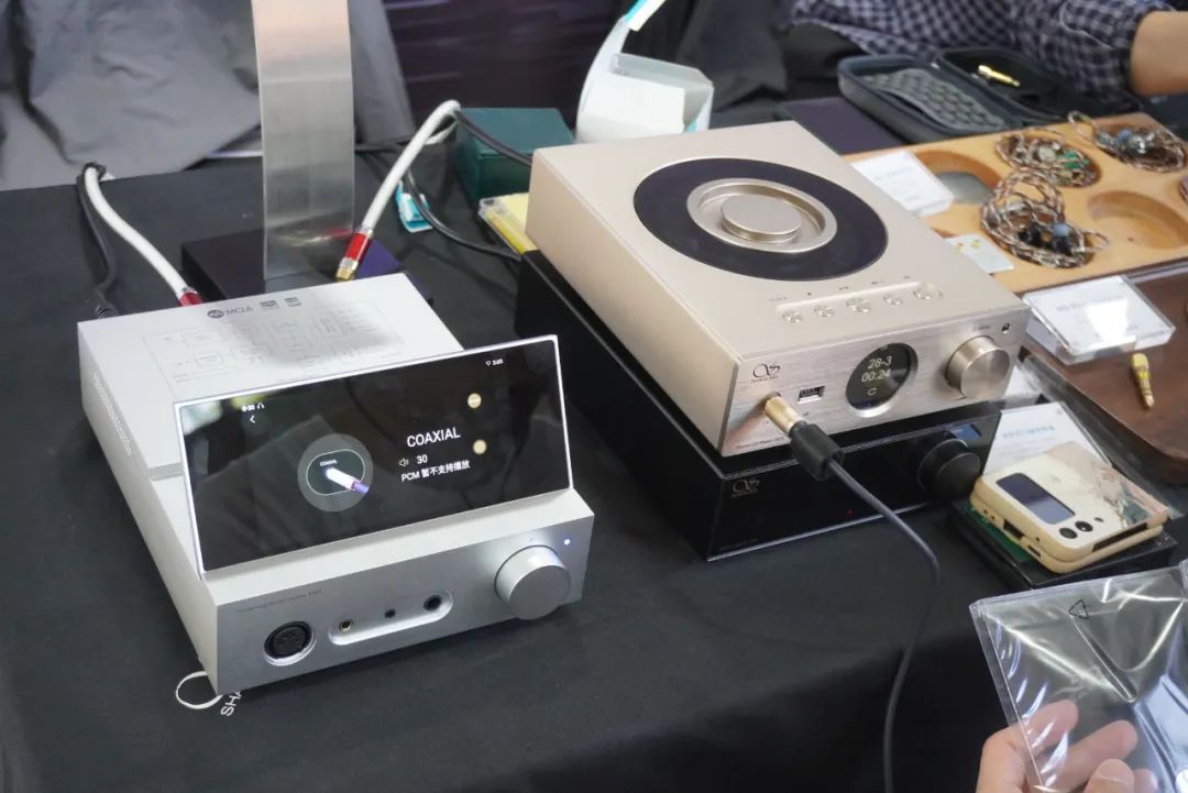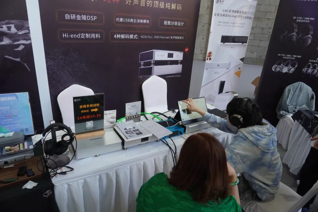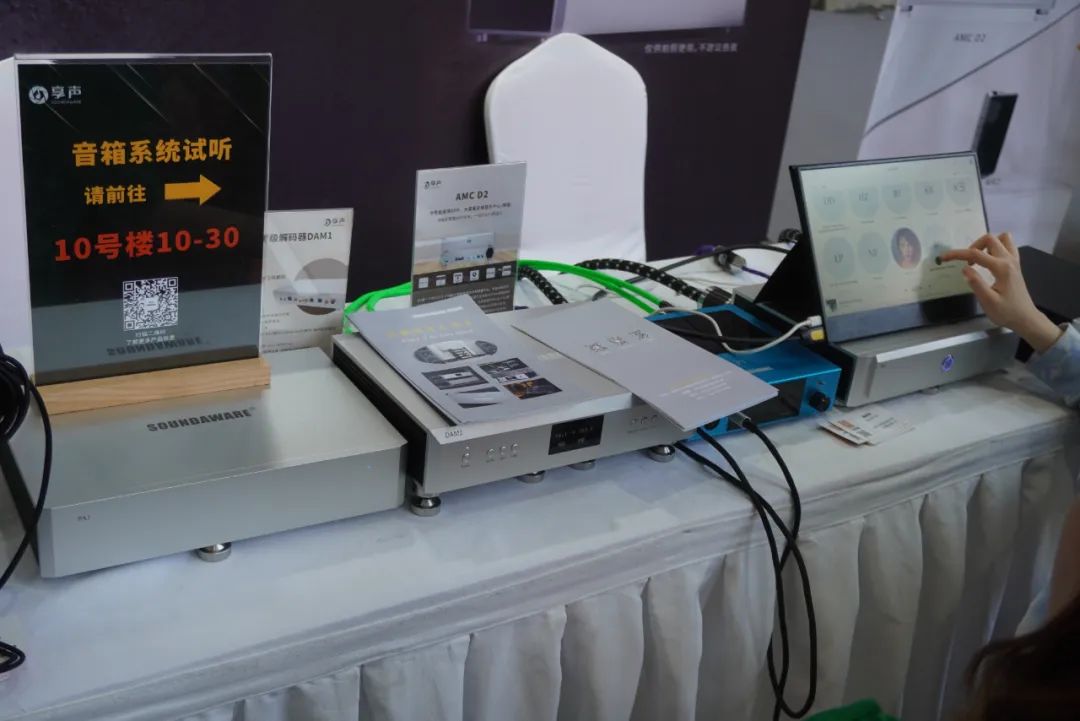享声SOUNDAWARE在耳机区主要演示D2数字转盘和DAM1旗舰解码等产品。
