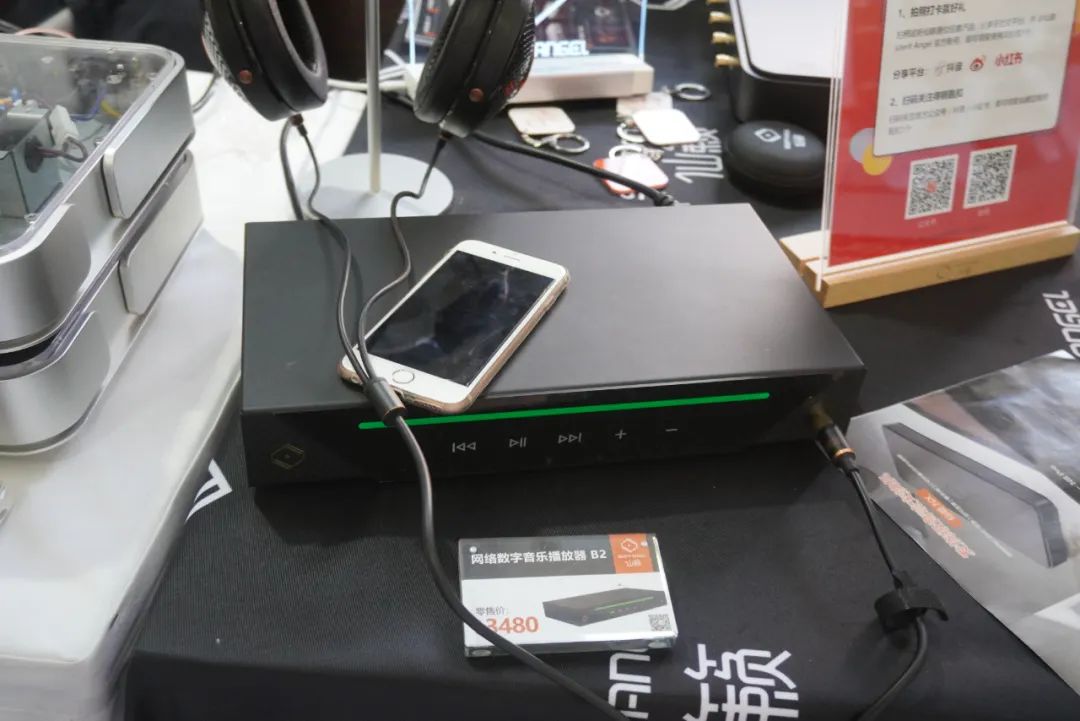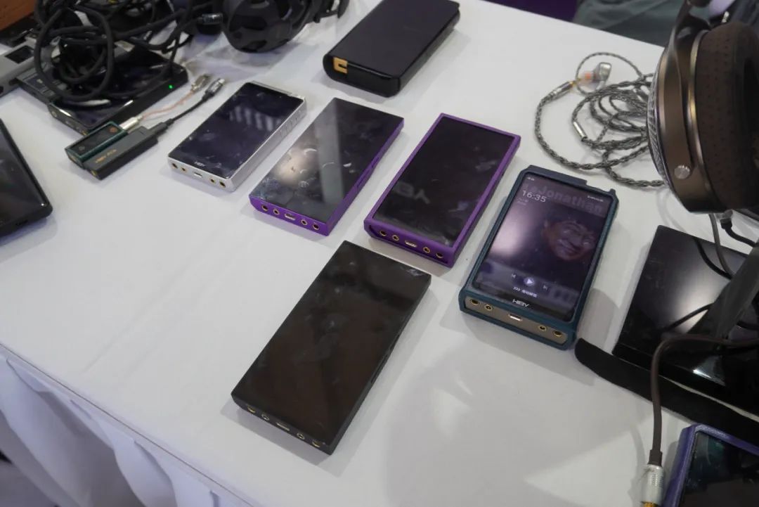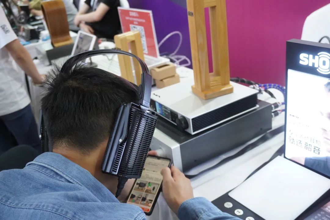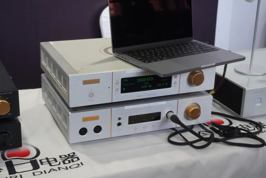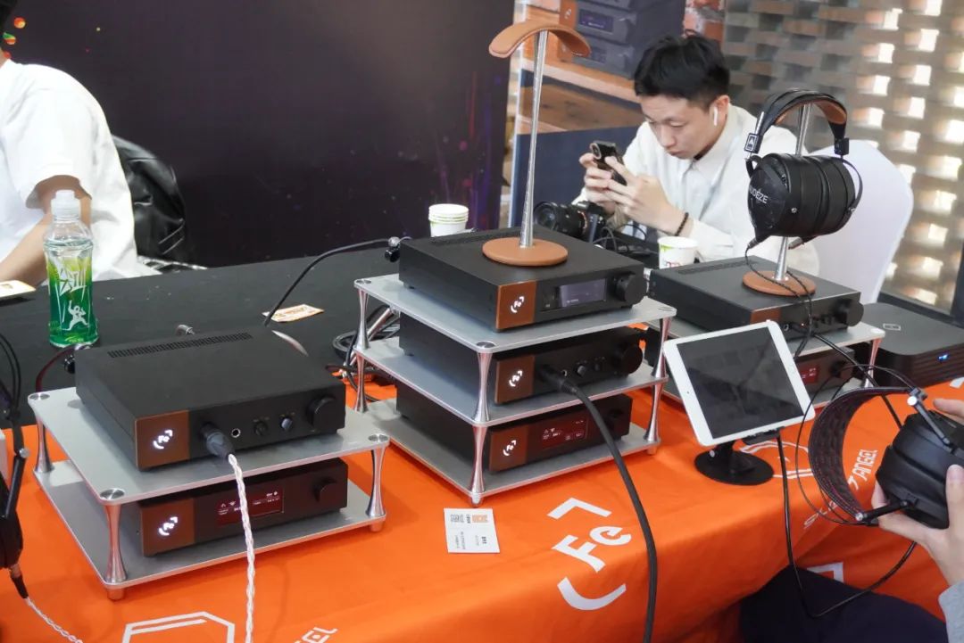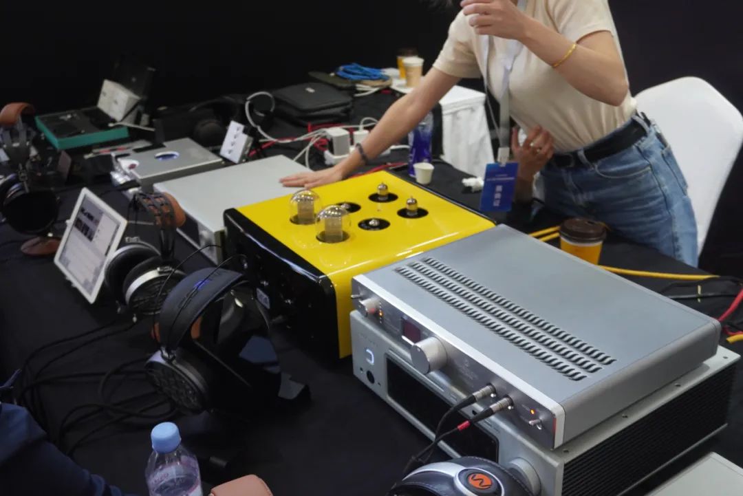 享声SOUNDAWARE在耳机区主要演示D2数字转盘和DAM1旗舰解码等产品。