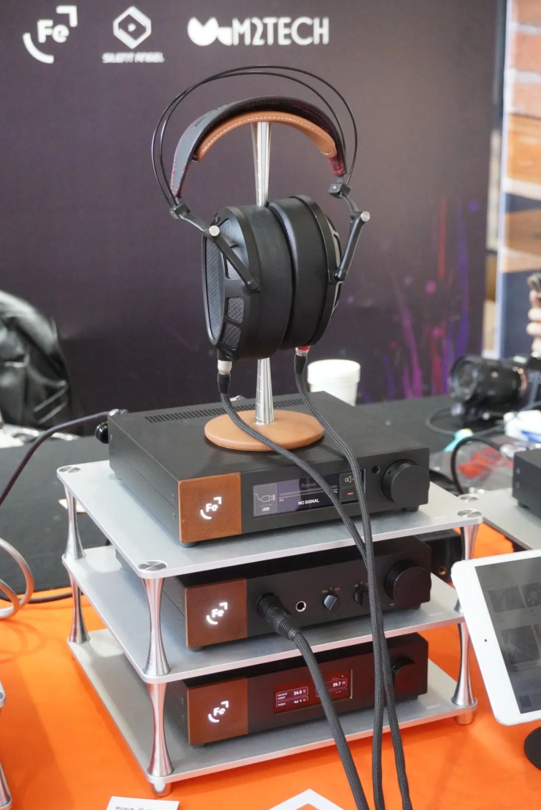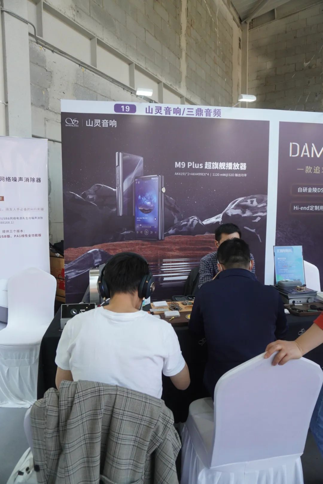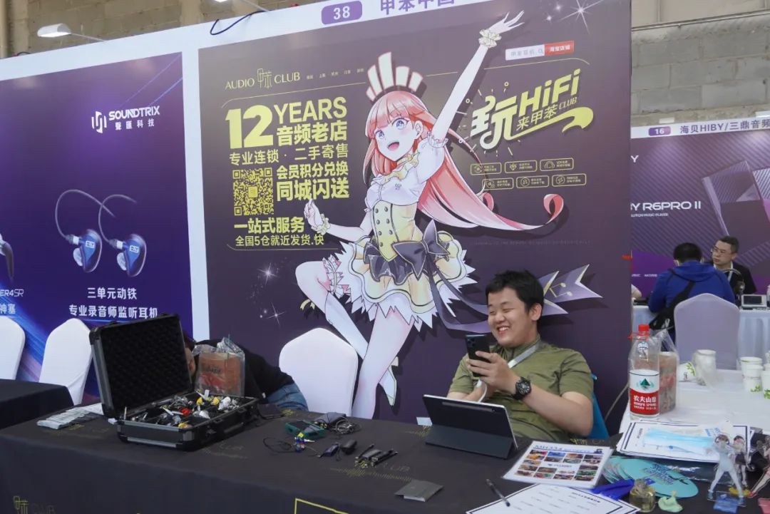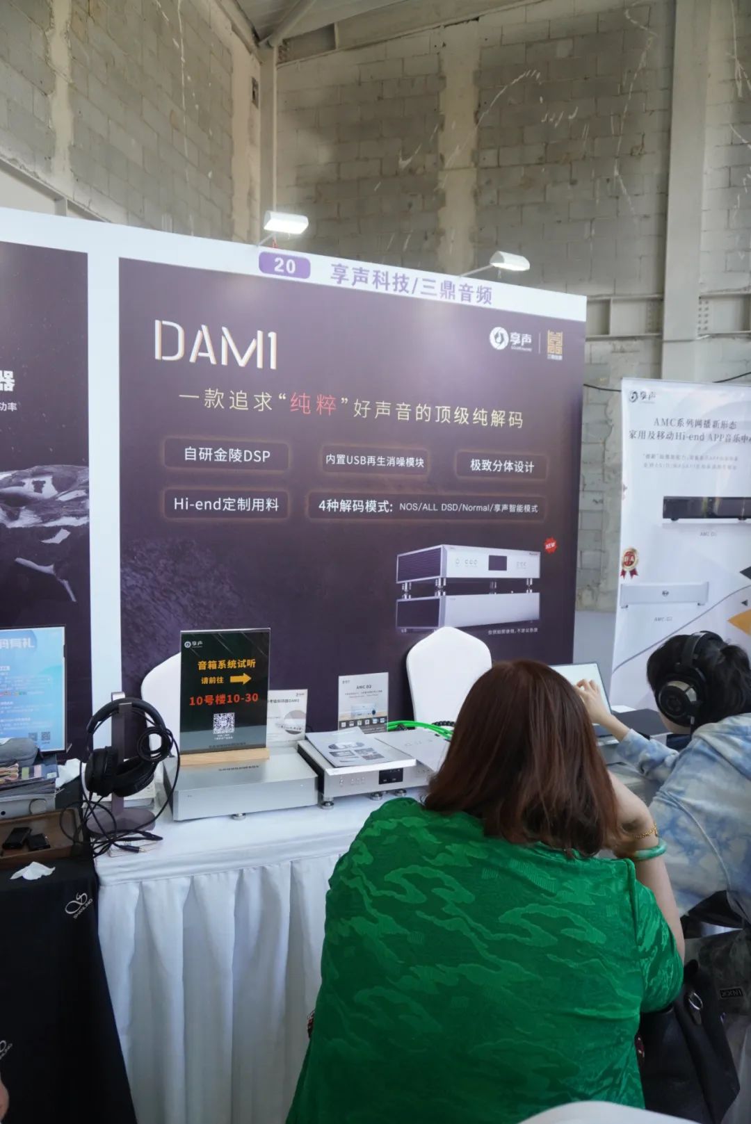 享声SOUNDAWARE在耳机区主要演示D2数字转盘和DAM1旗舰解码等产品。