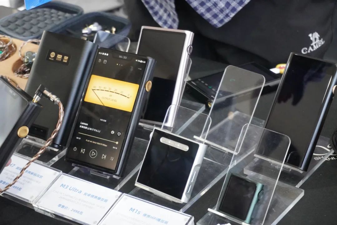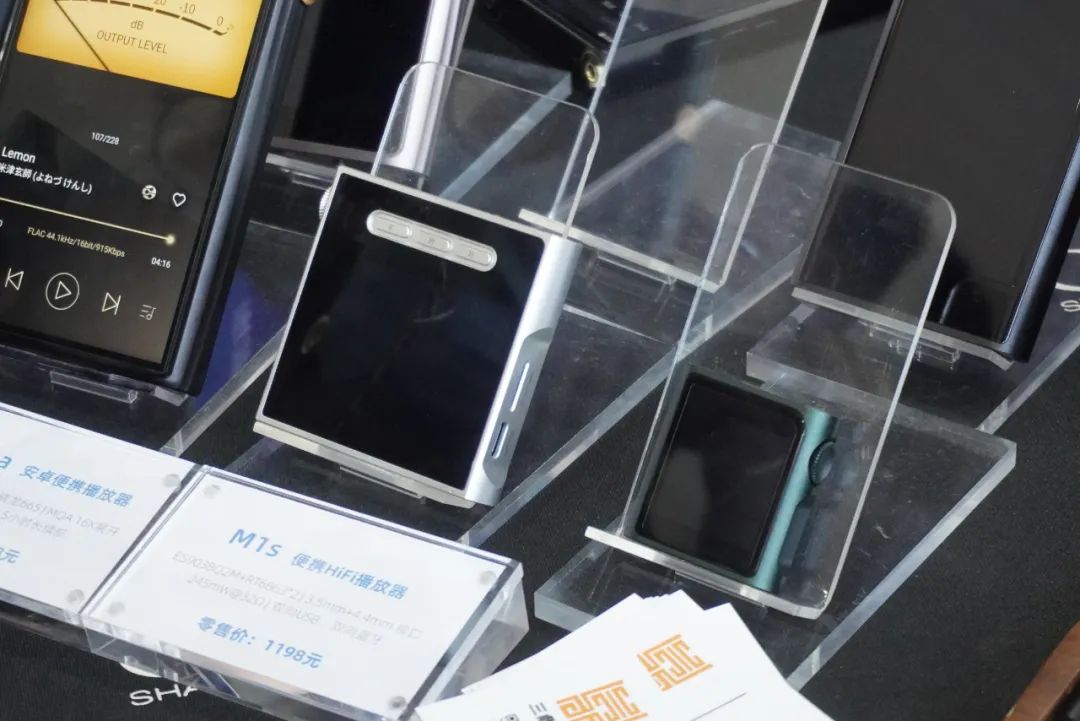 山灵展示M9 Plus、M1s等便携播放器,还有EM7流媒体播放器、EC3 CD机等产品。