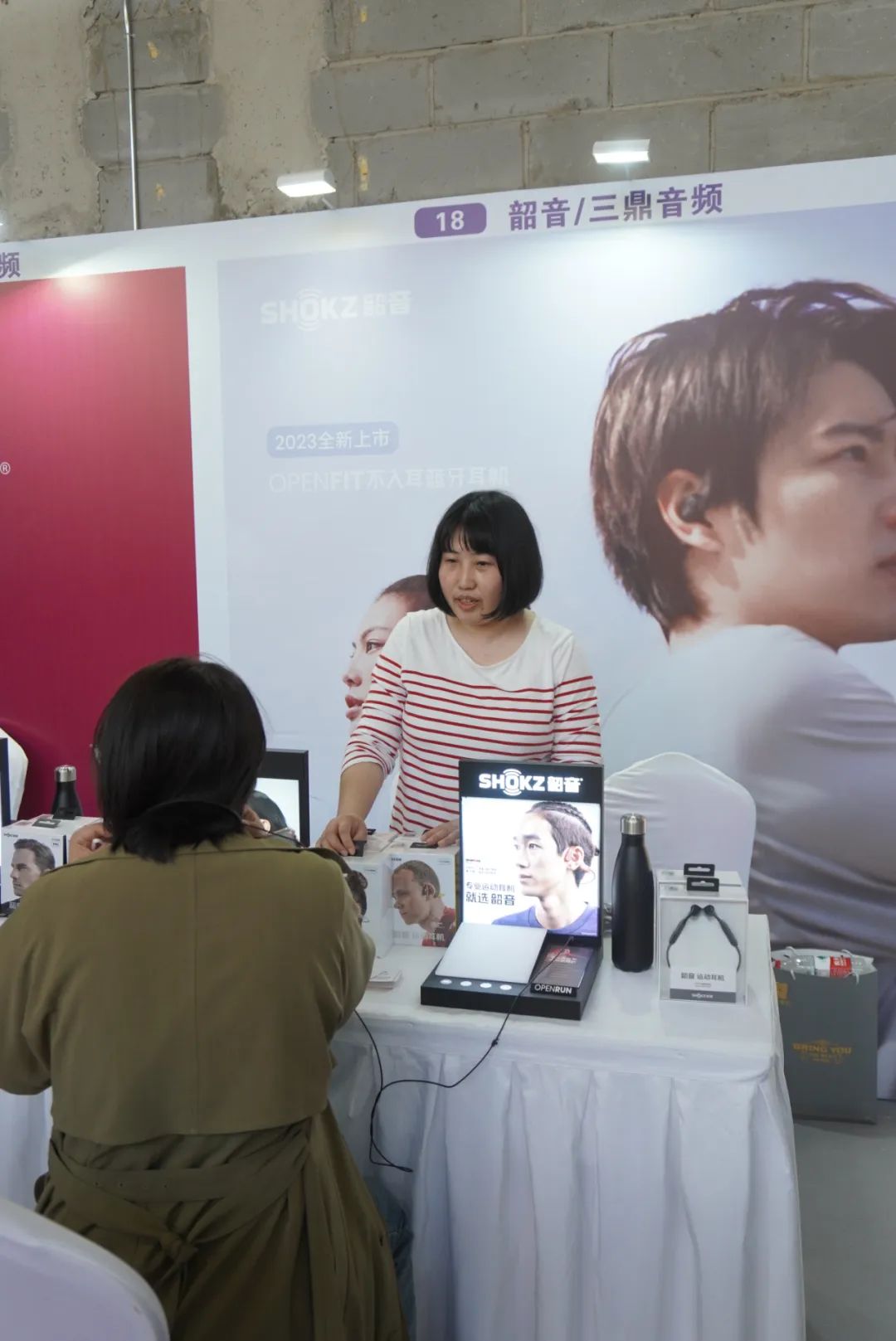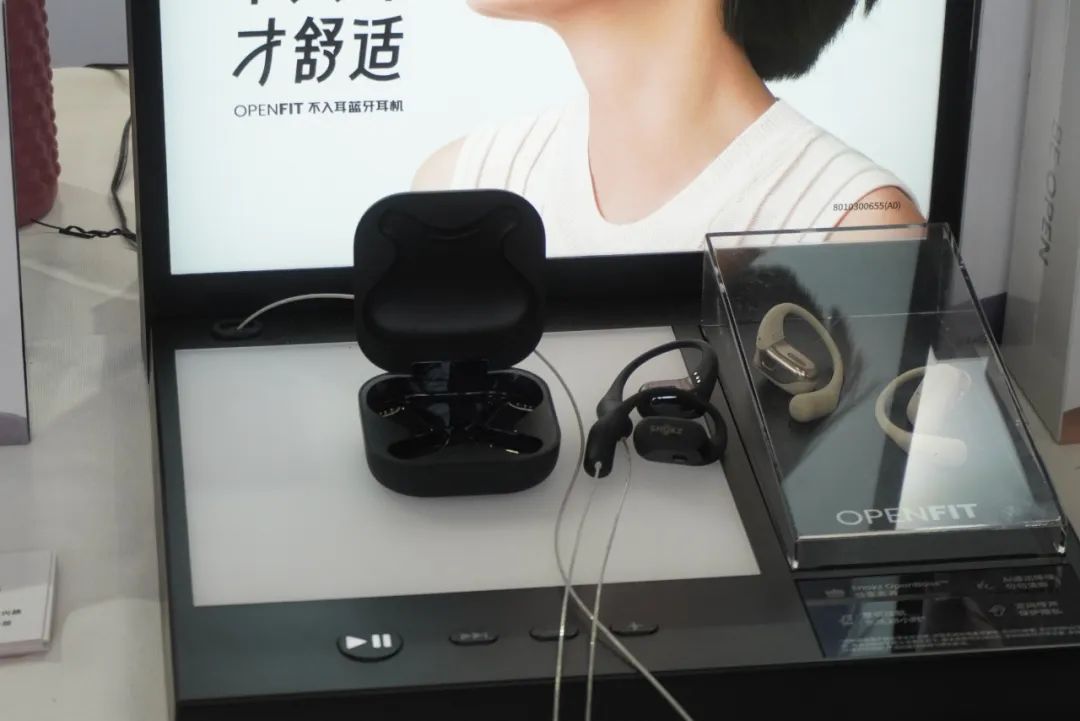 韶音SHOKZ展示各种专业运动蓝牙耳机。