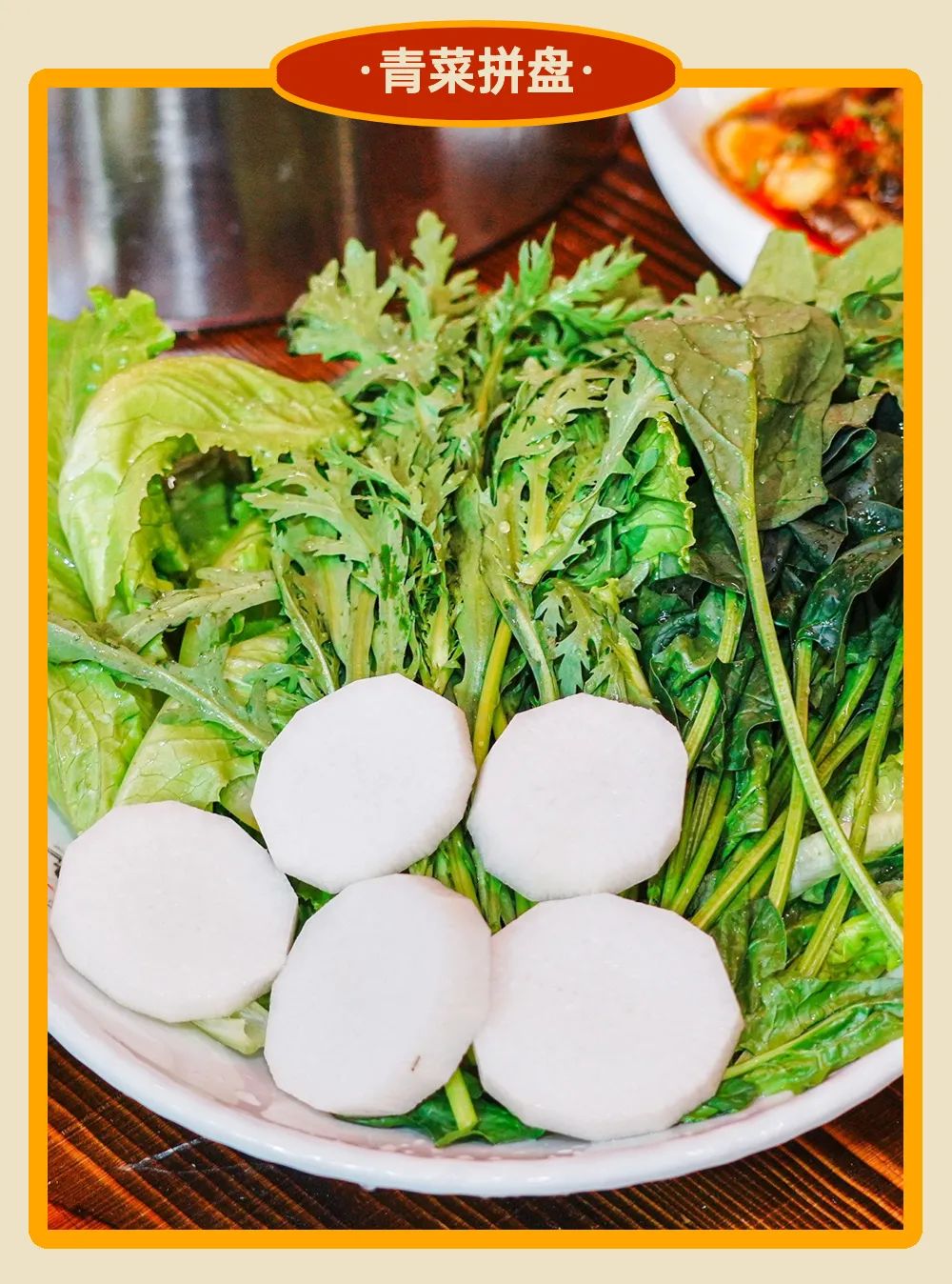 青菜拼盘和鸡煲汤底涮着吃,青菜吸收了汤的精华,清爽解腻,还能平衡纤维营养。