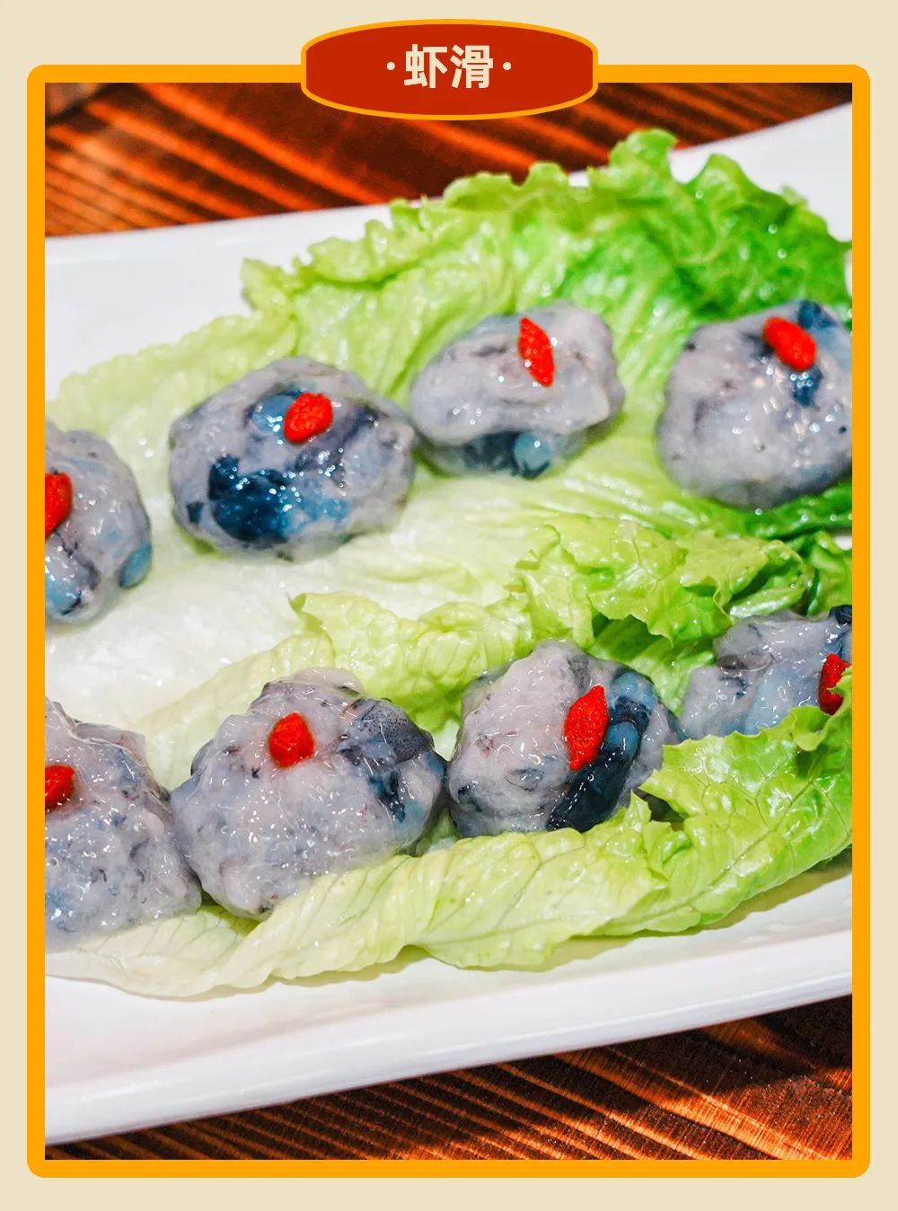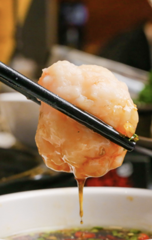 涮菜清单里,虾滑得有姓名。新鲜虾肉摔打成泥后搓揉而成,每颗虾滑里都藏着一个大虾仁,诚意满分。