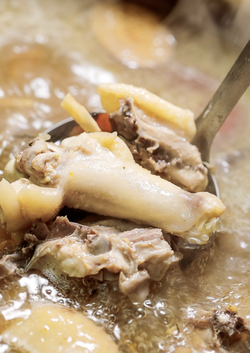 自然散养的鸡肉煲出来,肉质紧实而不柴,细细品味,入味得也刚刚好,吃得出的新鲜,连鸡皮也十分Q弹。