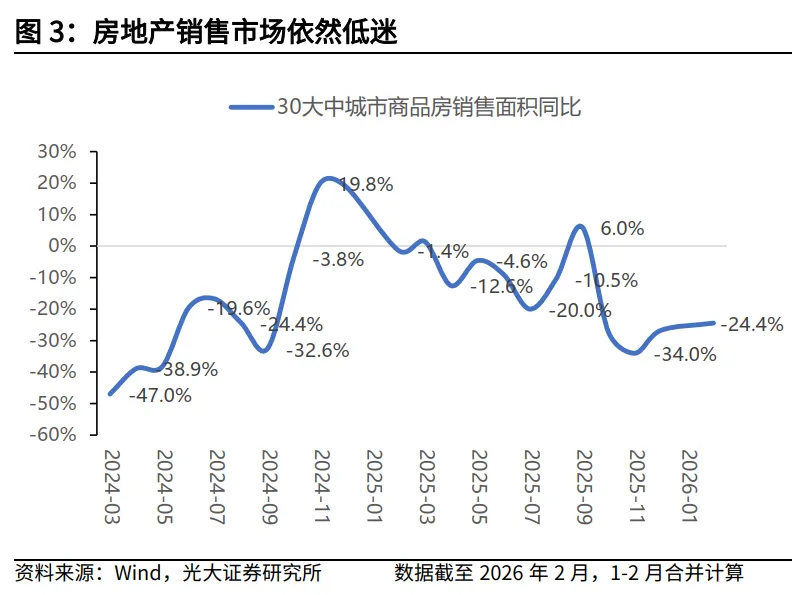 在对1月份金融数据进行点评中,我们曾提示:“居民中长期贷款同比少增释放出一个值得关注的信号,即开年房地产销售是否能产生持续的‘小阳春’行情。”(详见2026年2月14日发布的报告《金融数据实现高质量开年——2026年1月金融数据点评》)。