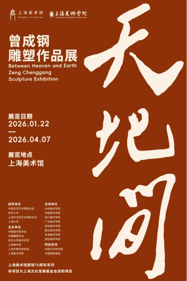本次展览集中呈现了曾成钢四十年来的创作精品,以 “天地间” 为主题,分为四个篇章,137件作品沿中轴线贯穿上海美术馆核心展厅,构建出一个气象恢宏、意蕴深远的艺术世界。其中序章 “山河巨丽” 设于中华艺术宫户外广场,《龙马》《精神不倒》《我们同行》《远山呼唤》《站立的鸟》《剧神之柱》等作品依次铺陈,形成气势磅礴的空间序列。第一单元 “生命意象”,以自然母体为切入点,探讨生命的生成与灵性,从《精灵系列》到《莲》,集中呈现了曾成钢对自然本体的深度关切。第二单元 “历史回响”,通过《鉴湖三杰》《梁山好汉系列》《大觉者》《中国神话故事》等作品,再现文化记忆的精神力量。第三单元 “天地精神”,以《百鸟鸣天》《中华家园》《同舟共济》等作品,召唤人类发展的未来愿景。策展人马琳指出,群体雕塑与象征意象的交织,使雕塑成为凝聚共同记忆、传递集体理想的重要媒介,揭示了曾成钢从个体走向群体、从历史通向未来的精神逻辑。
