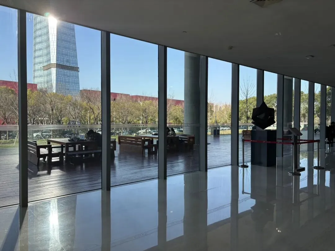 中午匆匆赶到,远远一看,浦东图书馆是简约大气的六面体建筑,像一个巨型“大书柜”,底部还是架空设计,现代感十足,很有辨识度。