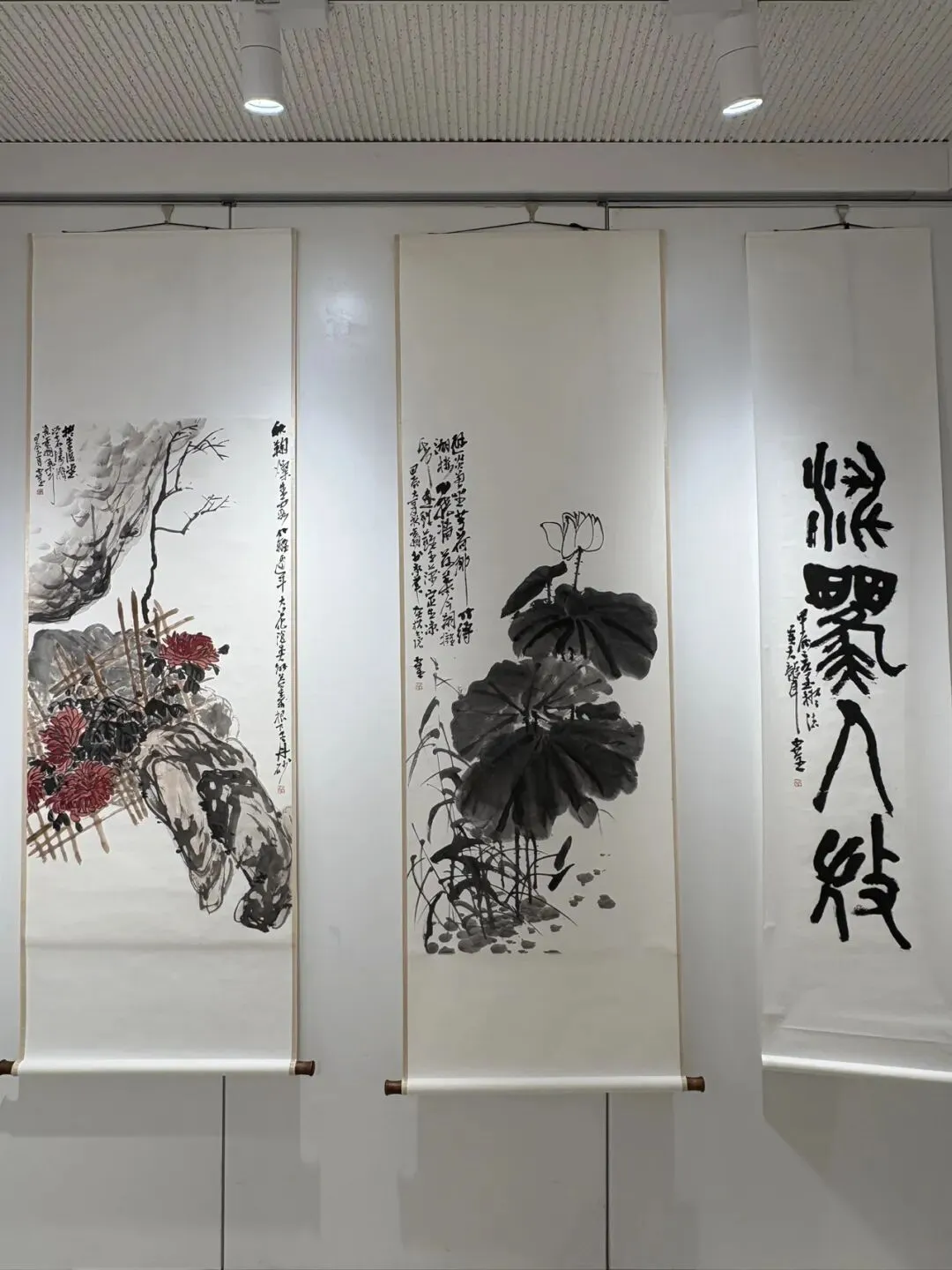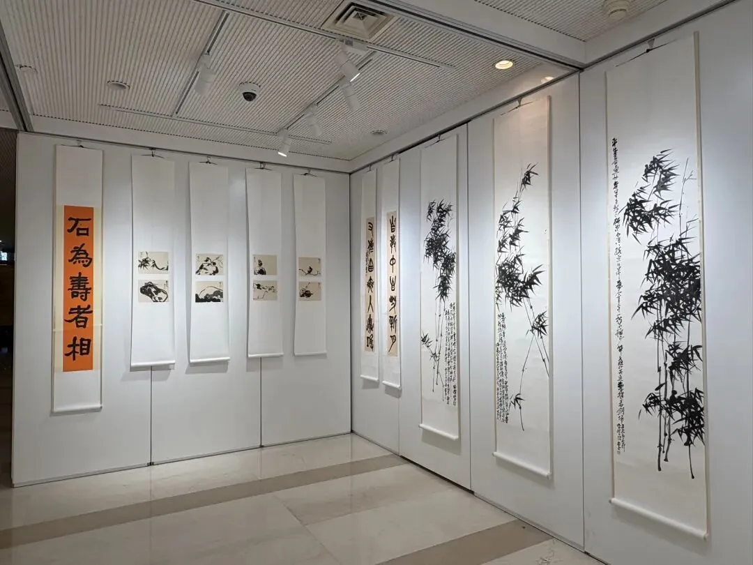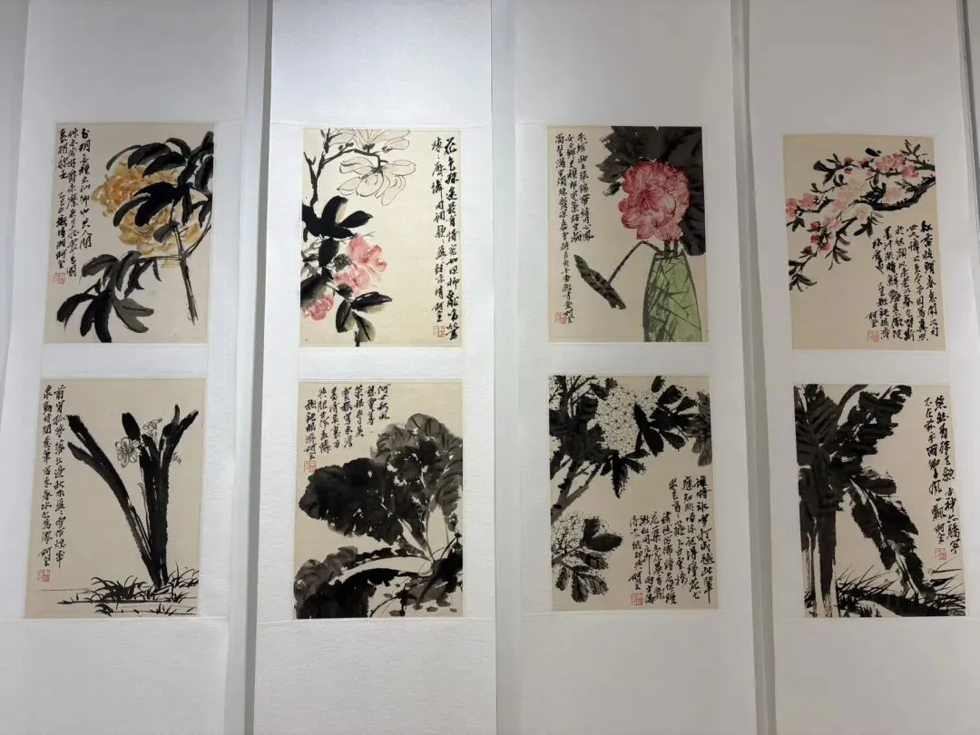 看完两小时的沪剧,我们在馆内随意逛逛,正巧遇上“问道缶翁——杜小荃中国画作品展”。这是画家杜小荃致敬海派宗师吴昌硕的个人展览,展出百余幅大写意花鸟新作。画作以梅兰竹菊、花卉为题,承吴昌硕金石入画、苍劲老辣的笔墨风格,守传统又有新意。虽然我对吴昌硕了解不多,却也能从这些作品里,感受到传统书画的温润与力量。