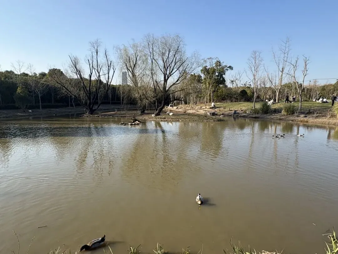 前面是一个池塘,有不少鸭子在自由戏水。最开心的,当然是围观的游客,小朋友更是兴奋得又蹦又跳。凑热闹的,还有不少麻雀,唷,好多只小麻雀,都来觅食。