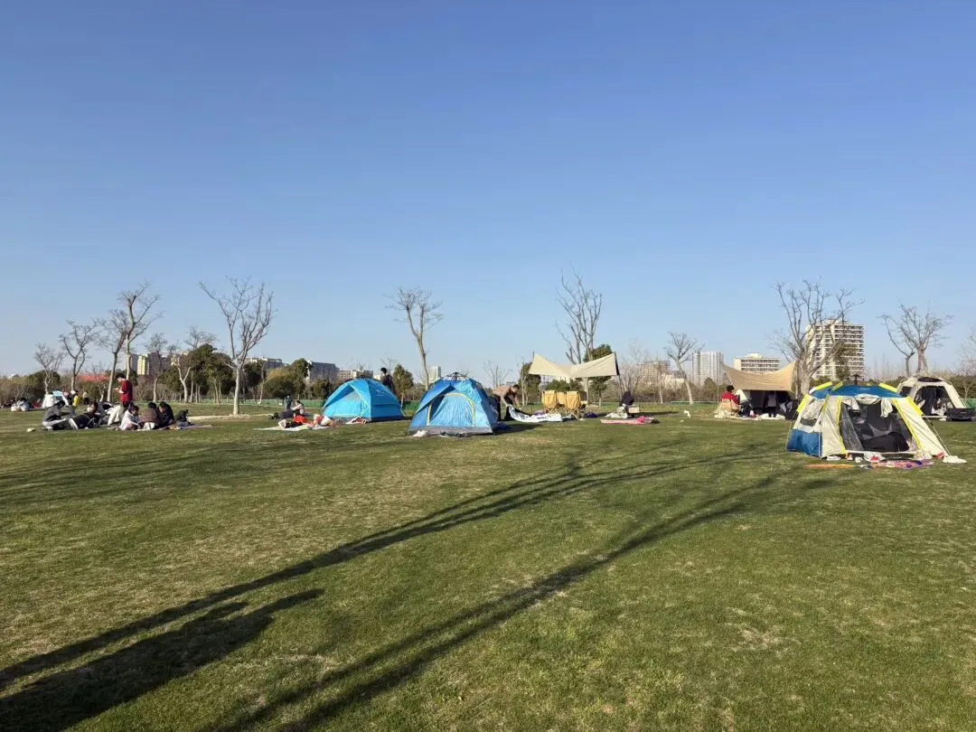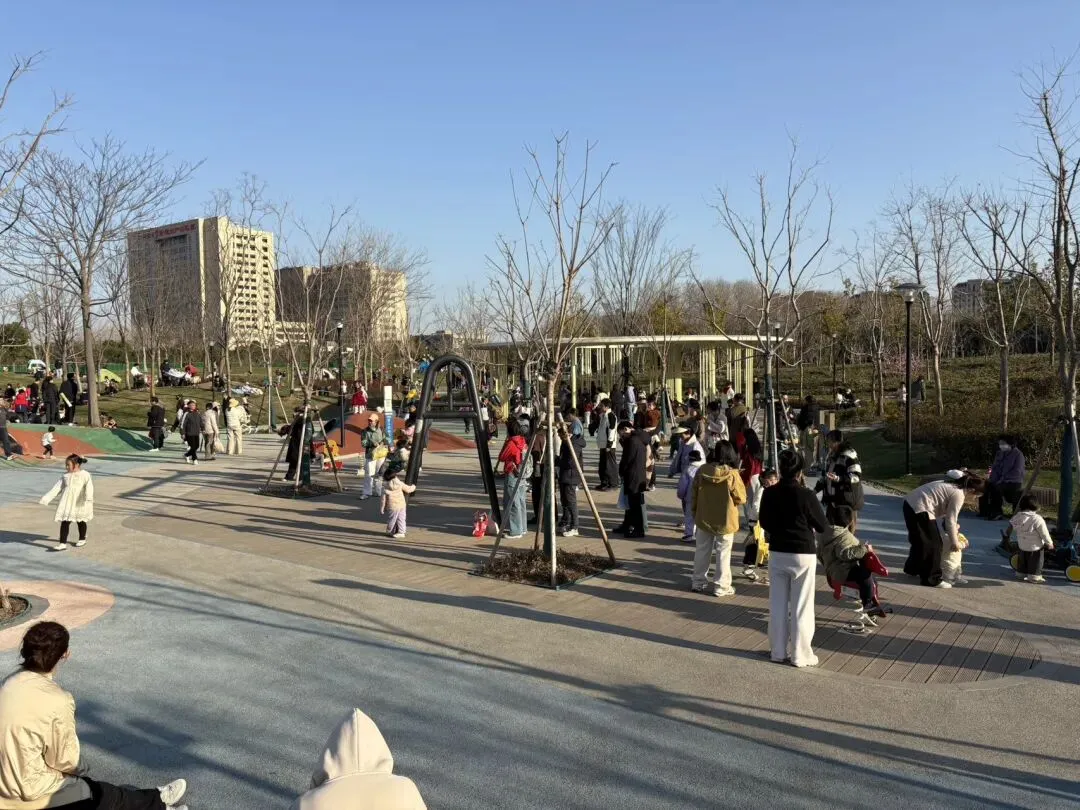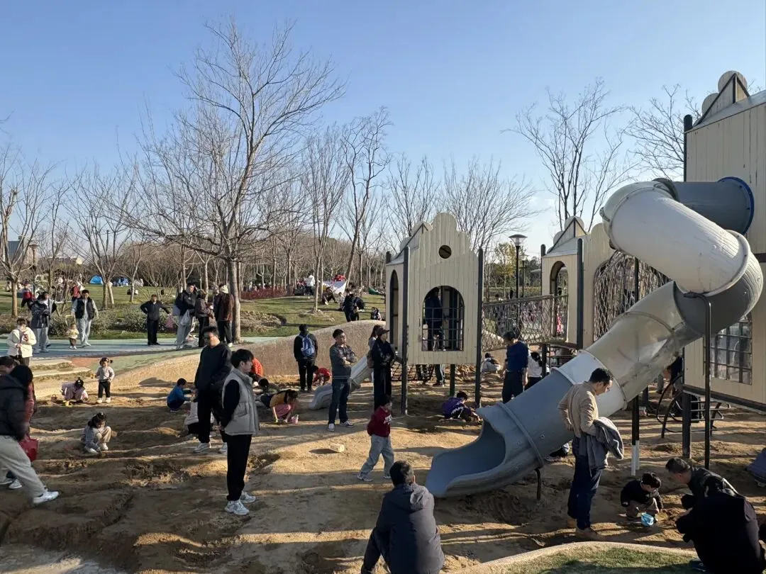 草坪上,有不少帐篷,现在,好像特别流行搭帐篷。健身区域,老老少少都在锻炼。最热闹的,是人工沙地,孩子们挖沙、运沙、踩沙,玩得开心。旁边的游乐区域,也围着不少孩子。难得的周末,孩子们终于可以松一口气了。