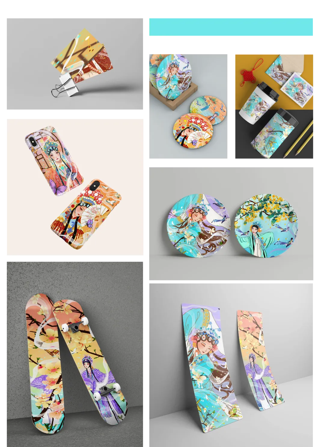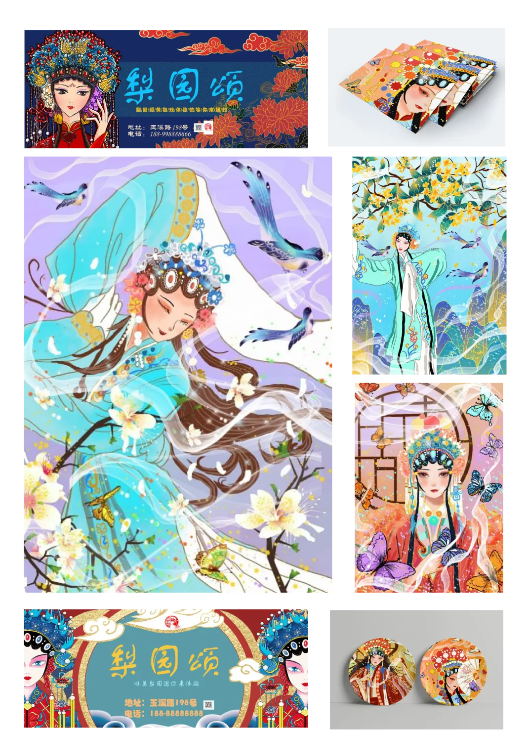 作品以安徽黄梅戏为主题基调,目的是为了结合黄梅戏戏曲的文化发扬我们的品牌,主要的色彩为黄色与红色等暖色,给人一种温暖的积极向上的感觉。并且也迎合了年轻人的口味。其中,视觉方面主要是以戏曲风格元素为主,结合了安徽黄山的戏曲风格与元素,从而形成一整套的策划体系。