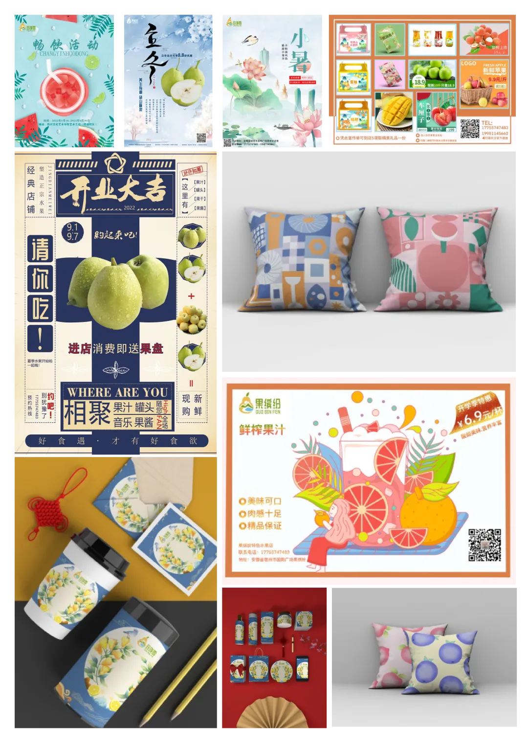 根据砀山本地风土人情来进行设计,主要突出当地盛产的酥梨,营造一种如临仙境一般的场景。海报主要根据我做的活动来进行设计的,每个节日的海报都不同,海报的风格不限,主要为了凸显活动内容,吸引客流。衍生品的设计主要想让用户在使用产品的时候,回想起在砀山买东西时的情景。买回去在实际生活中,更多时候用于陈设,桌面摆放,为整体的氛围增添美观感,增添生活的情趣和氛围。