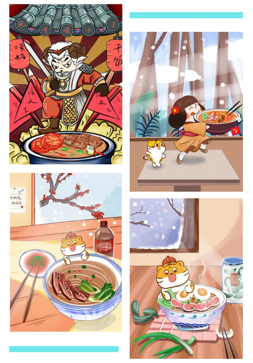 系列3以卡通手法通过过冬迎虎年,以米粉为主,过冬迎虎为辅进行绘制。