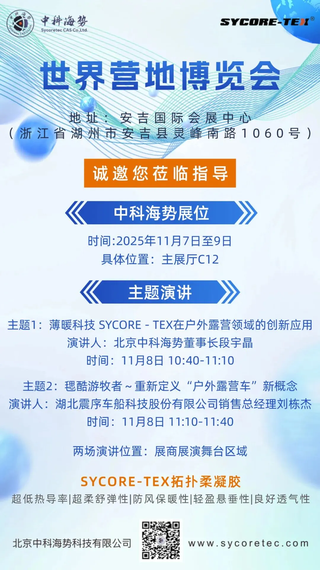 “ SYCORE - TEX 毸酷”高科技材料可应用于纺织服装、冷链物流、建筑保温以及特种领域等行业技术和产品需求。一经推出,即与多个国内外著名品牌公司达成战略合作,完全颠覆了厚重棉服、臃肿羽绒服占领冬季服装市场的现状,开启了"轻衣薄服,春装冬穿"的智能服装舒适体验新篇章!