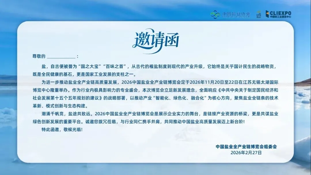 名称:2026中国盐业全产业链博览会