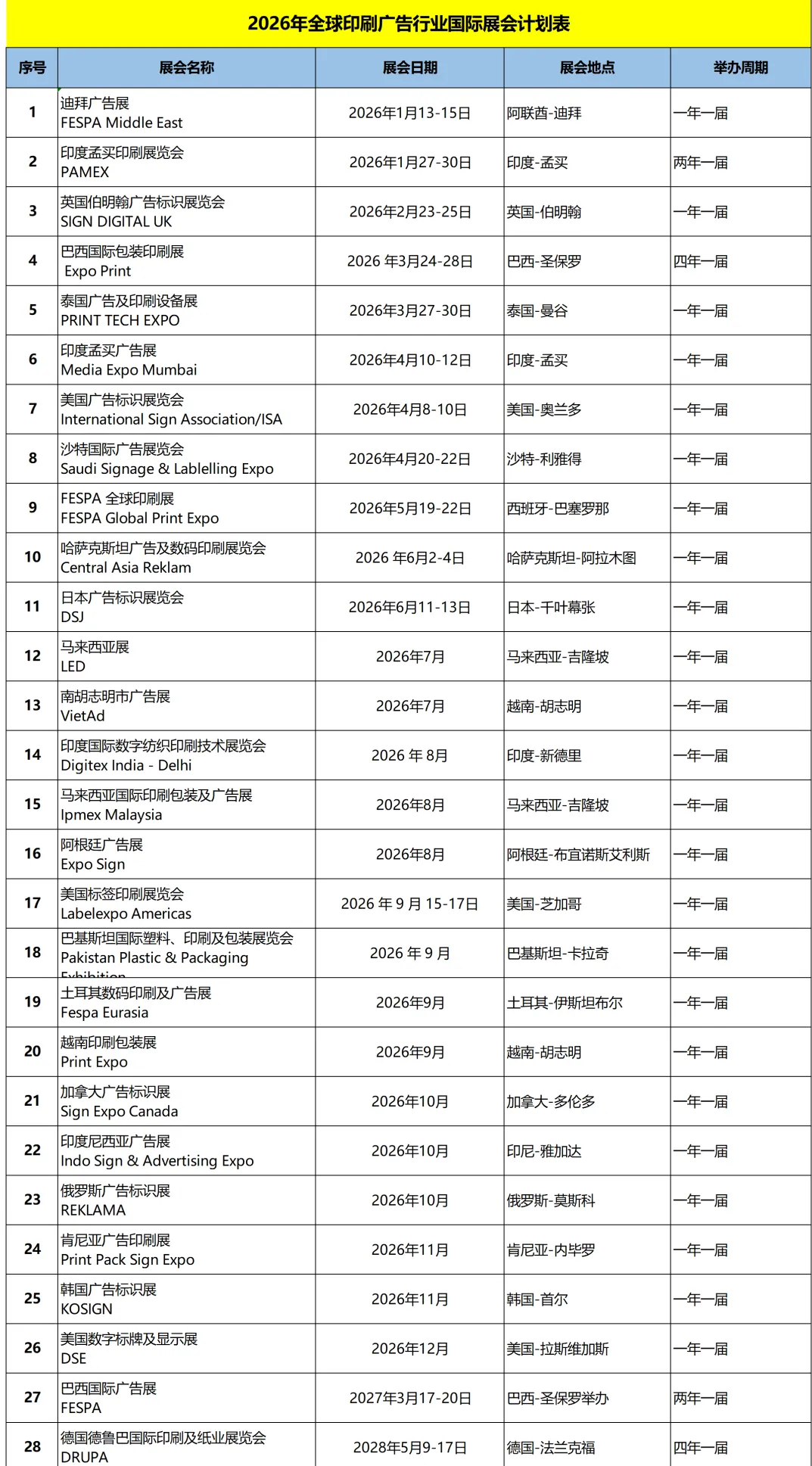 2026年全球广告印刷行业展会计划表
