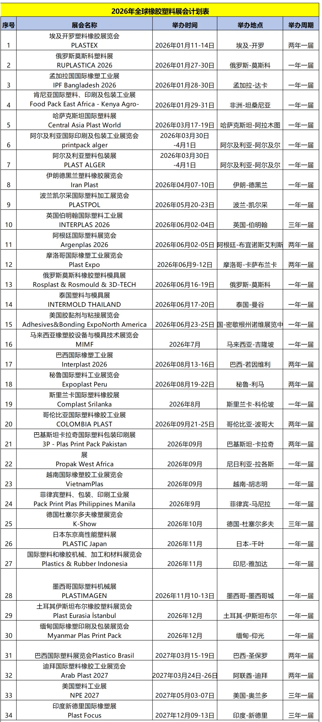 2026年全球橡胶塑料展会计划表