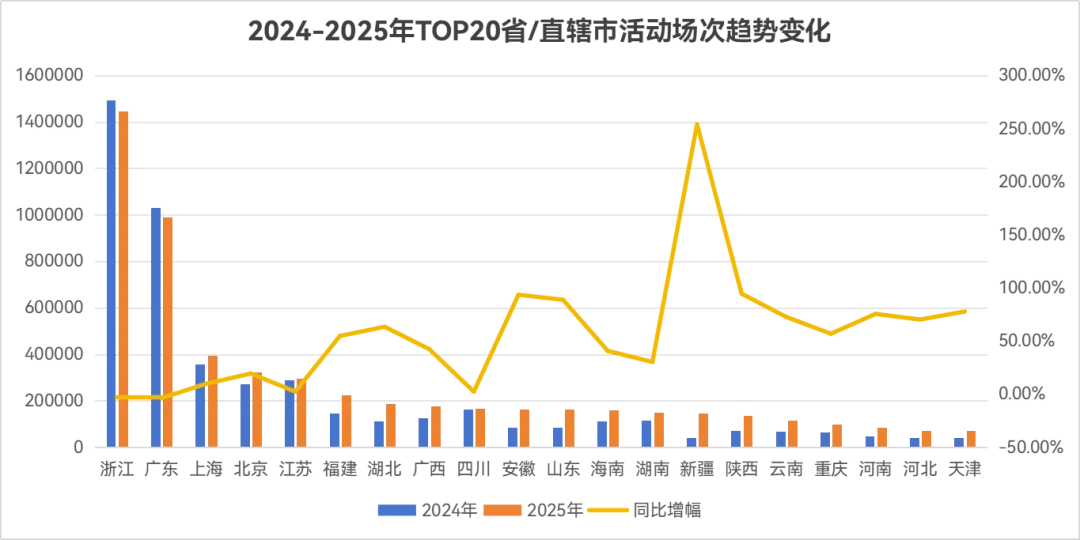 广东、浙江等传统影像服务需求大省,2025年活动场次同比轻微下降,降幅分别为 3.78%、3.05%,标志着市场已进入存量需求深耕阶段;