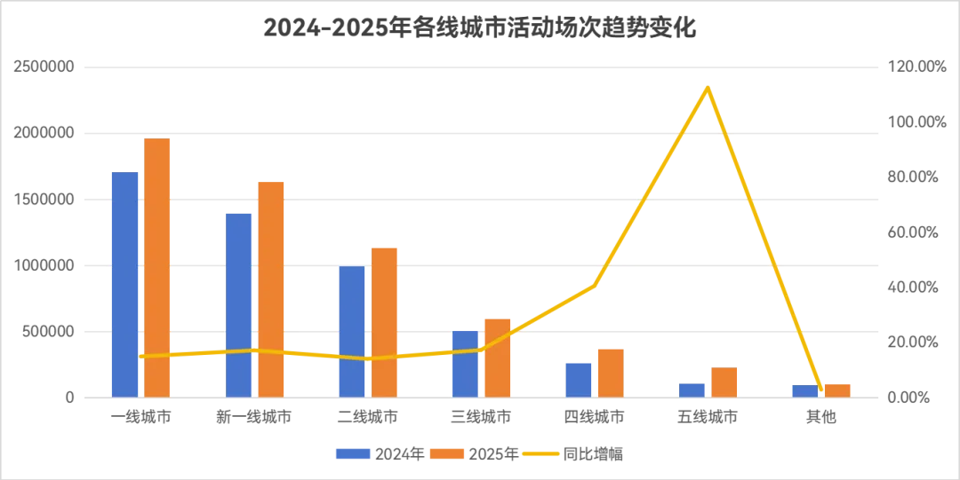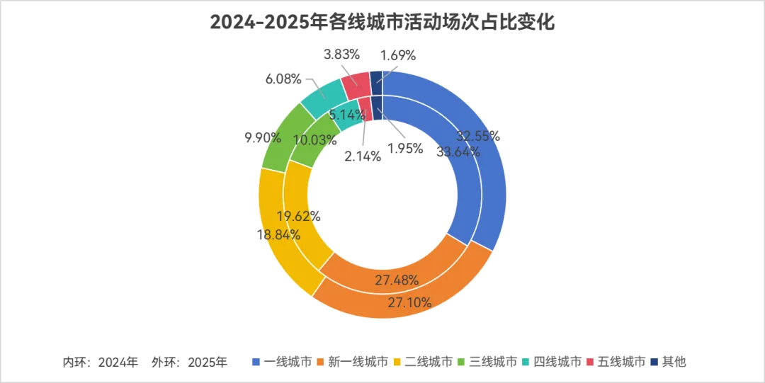从城市分布来看,一线、新一线城市作为影像服务核心市场,活动场次占比始终稳定在60%左右,意味着成熟市场进入存量深耕阶段。