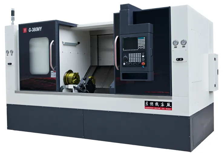 G-380MY为特别针对中大型轴类、盘类零件粗精工序车铣钻等一次成型加工的高精度车铣复合机型。床身应用切削液全收集箱式一体设计,加宽排屑槽,便于清洁排屑。采用插补Y轴结构、对比传统的刀塔带Y轴,克服了颠覆力矩带来的精度误差,提高了刚性及加工精度。
